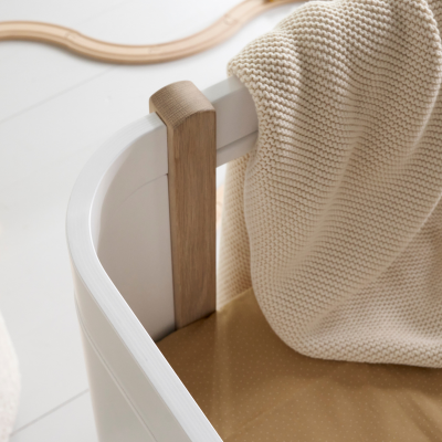 Das perfekte Bett sollte Ihr Kind über viele Jahre hinweg begleiten, daher gibt es kein besseres Material als massives Echtholz. Das Wood Mini+ Babybett besteht aus weiß lackierter Birke und geölter Eiche. Je nachdem, für welches Design Sie sich entscheiden, ist die Eiche entweder naturfarben oder weiß geölt. Massives Echtholz steht hierbei für Stabilität, Langlebigkeit und Nachhaltigkeit.