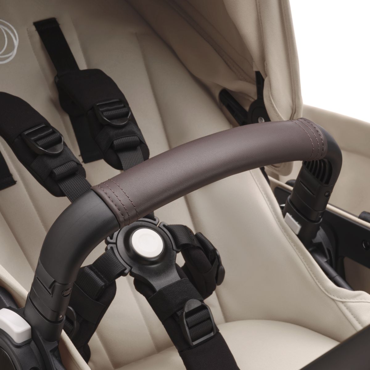 Der Bugaboo Donkey 5 bringt im Vergleich zum Donkey 3 zahlreiche praktische Verbesserungen mit sich. Die Sitzeinheit und Liegewanne wurden höher positioniert, was das Hineinlegen des Kindes erleichtert und es besser vor Abgasen schützt. Ein integriertes Lüftungsnetz in der Liegewanne sorgt für bessere Luftzirkulation und ermöglicht Blickkontakt für Geschwisterkinder. Der optimierte Faltmechanismus erleichtert das Zusammenklappen, besonders wenn es schnell gehen muss. Neue Befestigungspunkte machen das Anbringen von Zubehör wie Becherhalter oder Mitfahrbrett besonders einfach. Zusätzlich überzeugt der Donkey 5 mit einem überarbeiteten Design, das durch ein nahtloses Winddeck, ein gesticktes Logo, eine neue Gestellfarbe in Graphit und eine angepasste Handgelenkschlaufe noch hochwertiger wirkt. Der gepolsterte 5-Punkt-Gurt mit Schnellklick-Funktion sorgt für sicheres Anschnallen – auch einhändig.