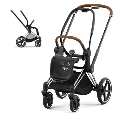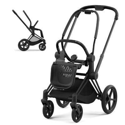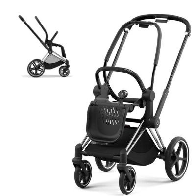 Lieferumfang: Cybex Priam Gestell inklusive Sitzrahmen, Regenverdeck, Gurtschloss, Unterkorb, Räder, Adapter, Bauchbügel