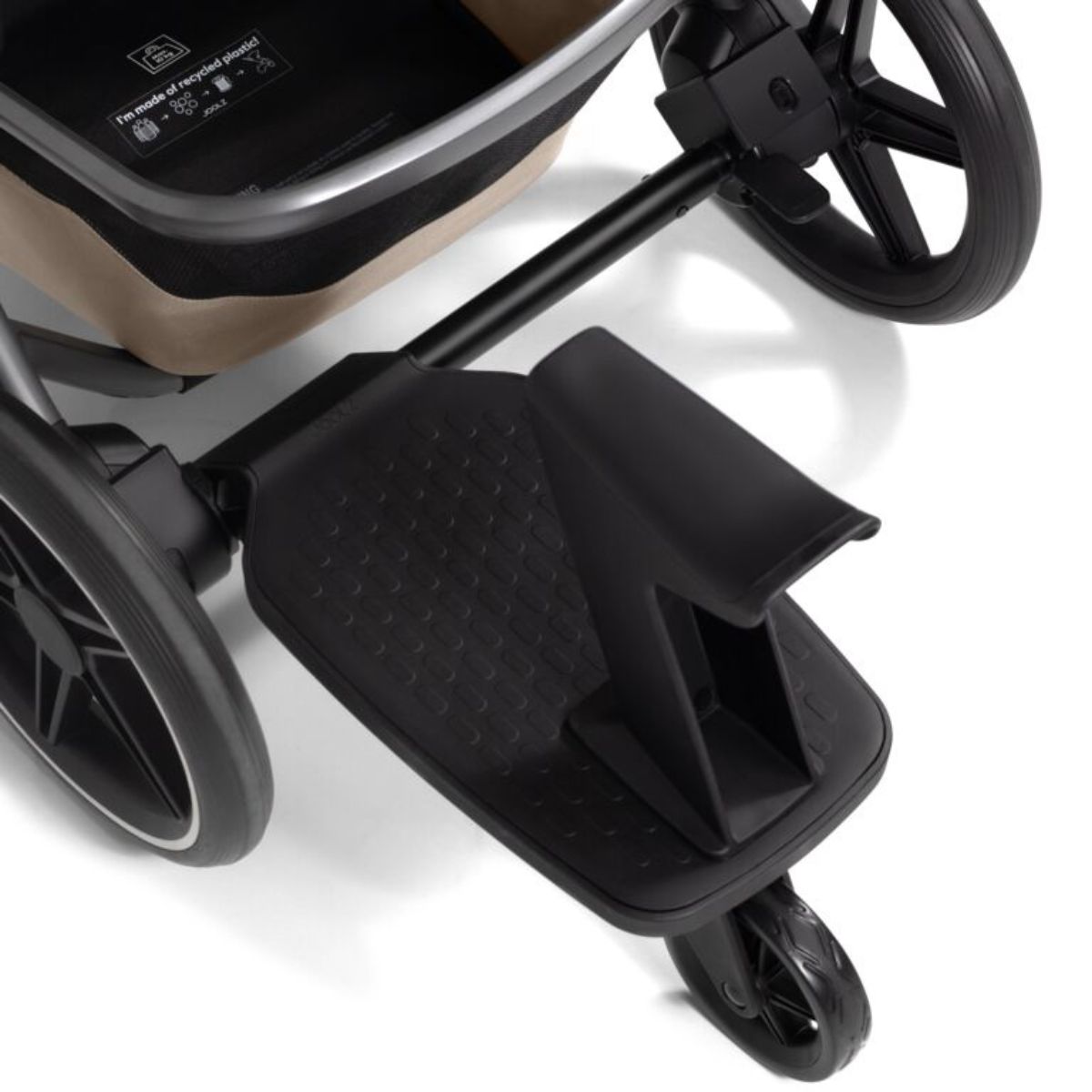 Das Joolz Day 5 Mitfahrbrett ist das ideale Zubehör für Familien mit mehreren kleinen Entdeckern. Es verwandelt den Joolz Day 5 Kinderwagen in eine vielseitige Lösung, wenn das ältere Geschwisterkind unterwegs eine Pause braucht – sei es stehend oder sogar sitzend! Das Mitfahrbrett bietet nämlich nicht nur eine stabile Plattform, auf der das größere Kind sicher mitfahren kann, sondern ist auch mit einer praktischen Sitzmöglichkeit ausgestattet. So kann sich das Kind entspannt hinsetzen, während die Eltern ohne zusätzlichen Aufwand unterwegs bleiben. Dank des einfachen Klicksystems lässt sich das Mitfahrbrett kinderleicht am Kinderwagen anbringen und bei Bedarf wieder abnehmen. Und wenn es gerade nicht gebraucht wird, kann es einfach hochgeklappt werden, damit der Kinderwagen weiterhin leicht zu lenken ist. Gefertigt aus robusten Materialien, ist das Mitfahrbrett bereit für viele gemeinsame Ausflüge und passt perfekt zu den Anforderungen des Familienalltags. Das Joolz Day 5 Mitfahrbrett bietet eine flexible Mitfahr- und Sitzgelegenheit – ideal für entspannte Abenteuer mit der ganzen Familie!