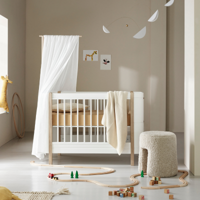 Das perfekte Bett sollte Ihr Kind über viele Jahre hinweg begleiten, daher gibt es kein besseres Material als massives Echtholz. Das Wood Mini+ Babybett besteht aus weiß lackierter Birke und geölter Eiche. Je nachdem, für welches Design Sie sich entscheiden, ist die Eiche entweder naturfarben oder weiß geölt. Massives Echtholz steht hierbei für Stabilität, Langlebigkeit und Nachhaltigkeit.