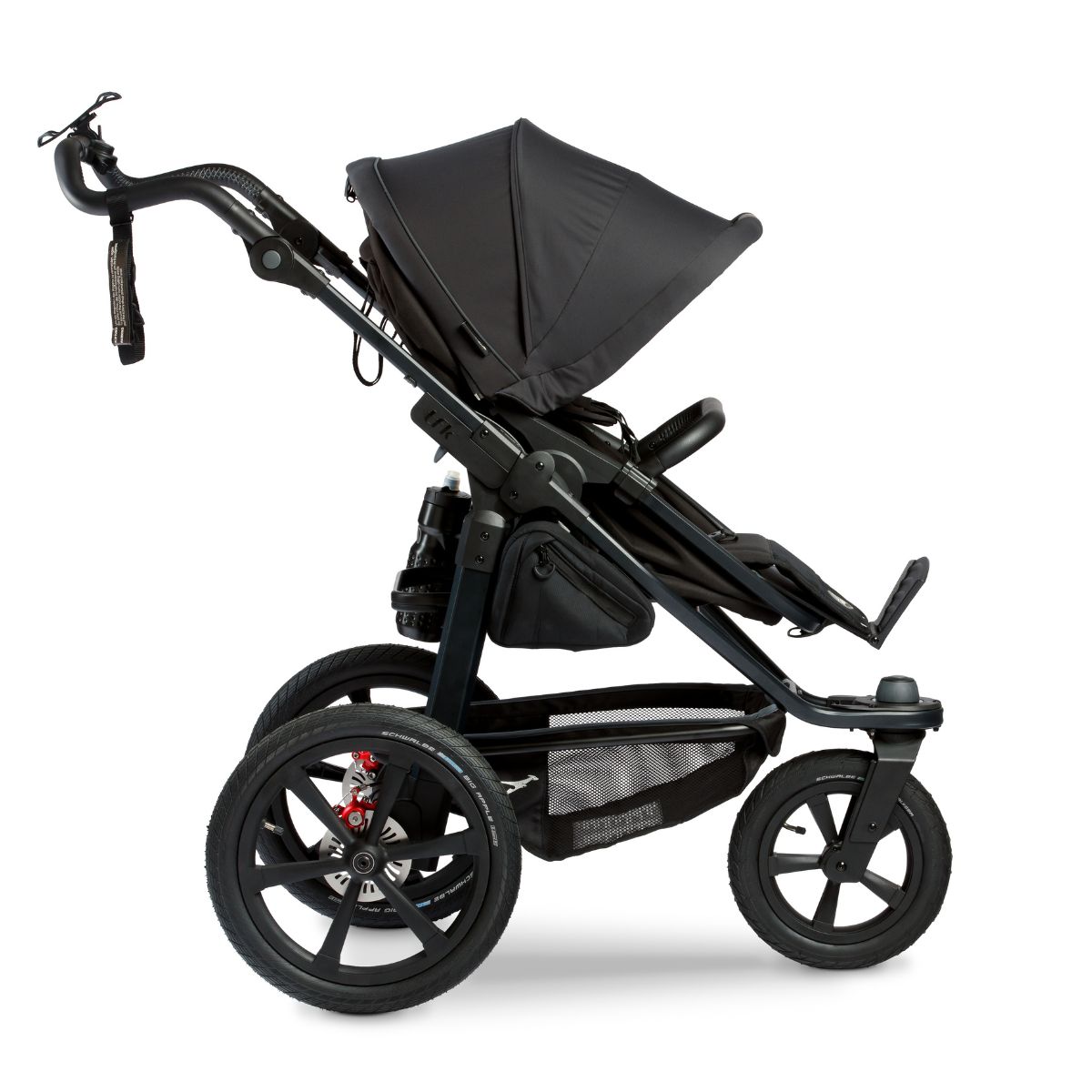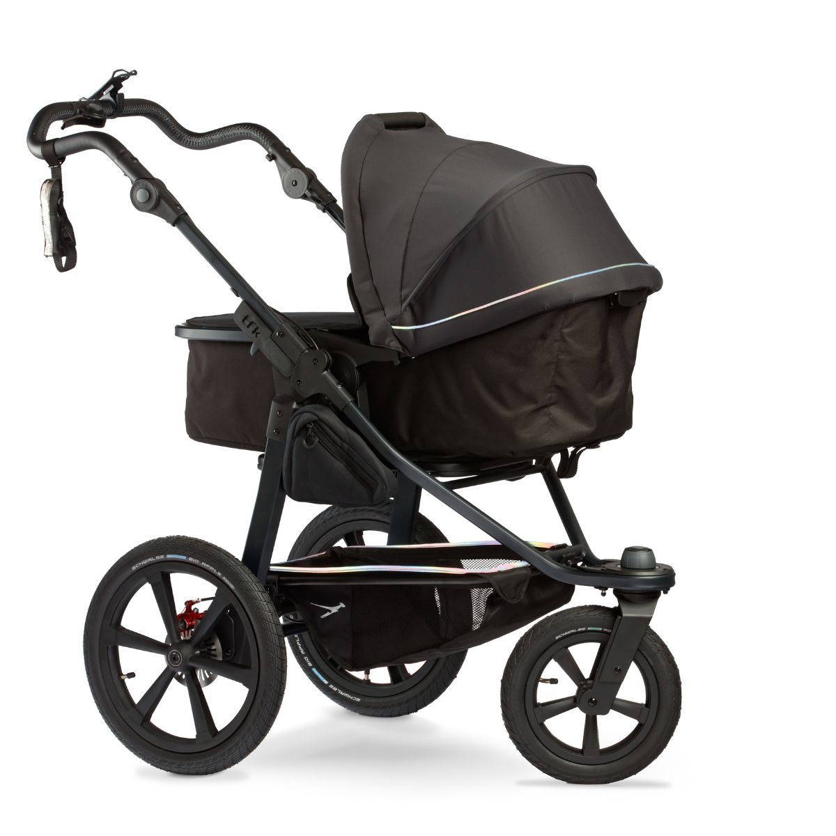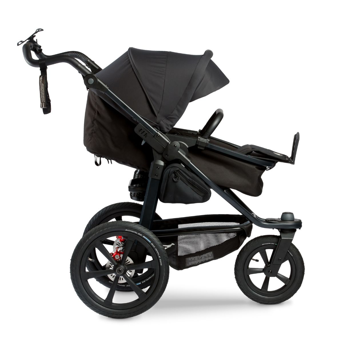 Besonders bei höheren Geschwindigkeiten sind zuverlässige Bremsen ein Must-have. Das überarbeitete Bremssystem des TFK Pro lässt keine Kompromisse zu, wenn es um Ihre und die Sicherheit Ihres Kindes geht. Die intuitive Bremstechnologie garantiert Ihnen stets volle Kontrolle, damit Sie schnell und präzise reagieren können. Um hierbei eine optimale Handhabbarkeit des Wagens zu ermöglichen, besteht er aus einem leichten Aluminiumgestell. Dabei entlastet der ergonomische Schiebegriff Ihre Arme, während Ihr Kleines in der Liegewanne oder im Sitz ruht.