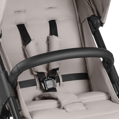 Der verstellbarere Schiebegriff sorgt für müheloses Schieben, egal wie groß Sie oder Ihr Partner sind. Der aufklappbare Bauchbügel macht das Ein- und Aussteigen zum Kinderspiel, während Ihr Kleines in der geräumigen Sitzfläche sicher und komfortabel sitzt, geschützt durch einen stabilen 5-Punkt-Gurt.