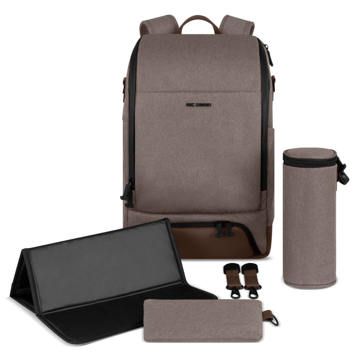 Lieferumfang: Wickelrucksack Active, Isolierter Flaschenhalter, Wickelunterlage mit Thermobeschichtung, Utensilientasche, Befestigung für Schiebe-Griff (ABC Design Klick-System)