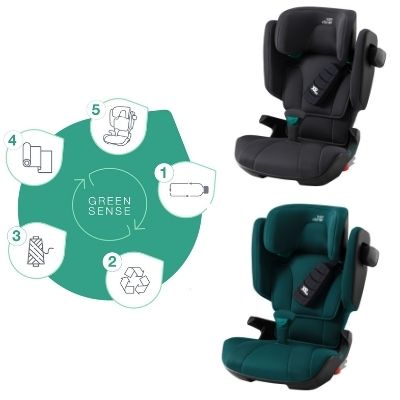 Auch auch bei der Wahl des richtigen Kindersitzes die Umwelt und eine nachhaltige Zukunft einbeziehen zu können, hat Britax-Römer jetzt recycelte Stoffe in der Auswahl. 100% recyceltes Polyester werden zu komfortablen und hochwertigen Stoffbezüge für Ihren Kindersitz. Diese Bezüge finden bereits bei den Farben Fossil Grey und Atlantic Green Anwendung. Wenn Sie eine dieser Farben wählen, erhalten Sie also Stoffe, in denen bis zu 29 PET-Plastikflaschen verarbeitet wurden und tun etwas für eine nachhaltige Zukunft.