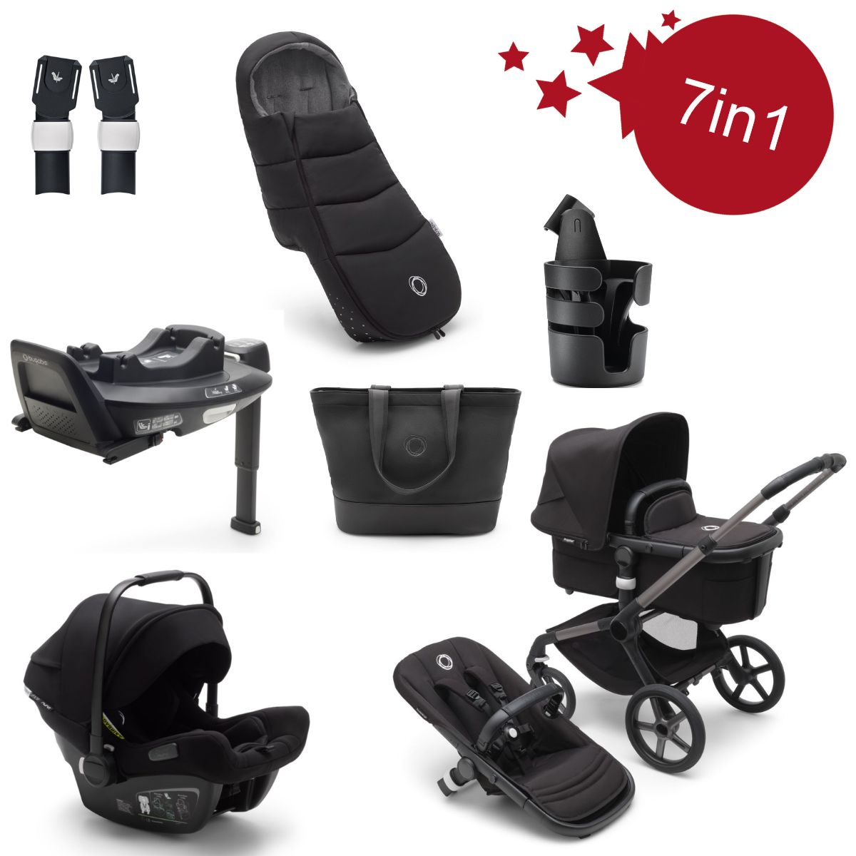 Das ultimative Set für Ihre Familienabenteuer - das Bugaboo Fox 5 Complete 7 in 1! Erleben Sie mit dem Bugaboo Fox 5 Kombikinderwagen höchsten Komfort und Flexibilität von Geburt bis zu einem Gewicht von 22 kg. Der Bugaboo Fußsack hält Ihr Kind an kalten Wintertagen warm, während der praktische Bugaboo Becherhalter Ihre Getränke stets griffbereit hält - egal ob für Sie oder Ihr Kleines. Die schicke Bugaboo Wickeltasche macht das Wickeln unterwegs zum Kinderspiel und der Bugaboo Fox/Lynx Adapter für Maxi-Cosi ermöglicht es Ihnen, blitzschnell die Bugaboo Turtle Air Babyschale auf Ihr Fox 5 Gestell zu klicken, damit Sie zu jeder Zeit flexibel sind - sei es mit dem Auto oder zu Fuß. Mit der leichten Bugaboo Turtle Air by Nuna Babyschale und der Bugaboo 360 Base by Nuna wird Sicherheit großgeschrieben, damit Sie mit einem Lächeln und voller Vorfreude auf die nächste Familienreise mit dem Auto starten können!