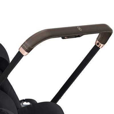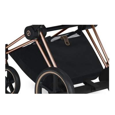 Der Cybex e-Priam hat einen großen Unterkorb, der zum einfachen Befüllen oder Herausnehmen aufgeklappt werden kann und der aufgeklappt noch mehr Platz für das Gepäck für unterwegs bietet. Insgesamt kann der Einkaufskorb mit bis zu 5 kg belastet werden.