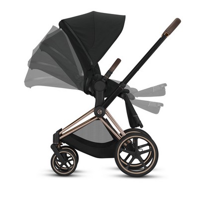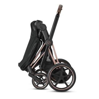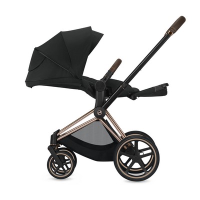 Der Cybex e-Priam hat einen großen Unterkorb, der zum einfachen Befüllen oder Herausnehmen aufgeklappt werden kann und der aufgeklappt noch mehr Platz für das Gepäck für unterwegs bietet. Insgesamt kann der Einkaufskorb mit bis zu 5 kg belastet werden.