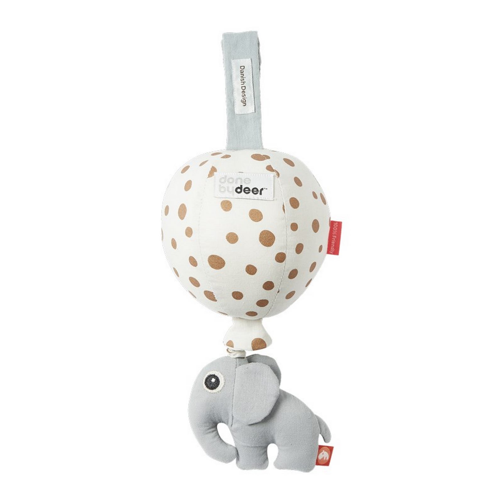 Die Done by Deer Ballon Spieluhr mit einem Elefanten als aufzieher ist eine toller Blickfang im Babyzimmer. Die Melodie "Over the Rainbow" sorgt dafür das Ihr kleiner Schatz schnell einschläft. Das Mobile aus 100% hautfreundlicher Baumwolle lässt sich ganz einfach über das Bettchen aufhängen.