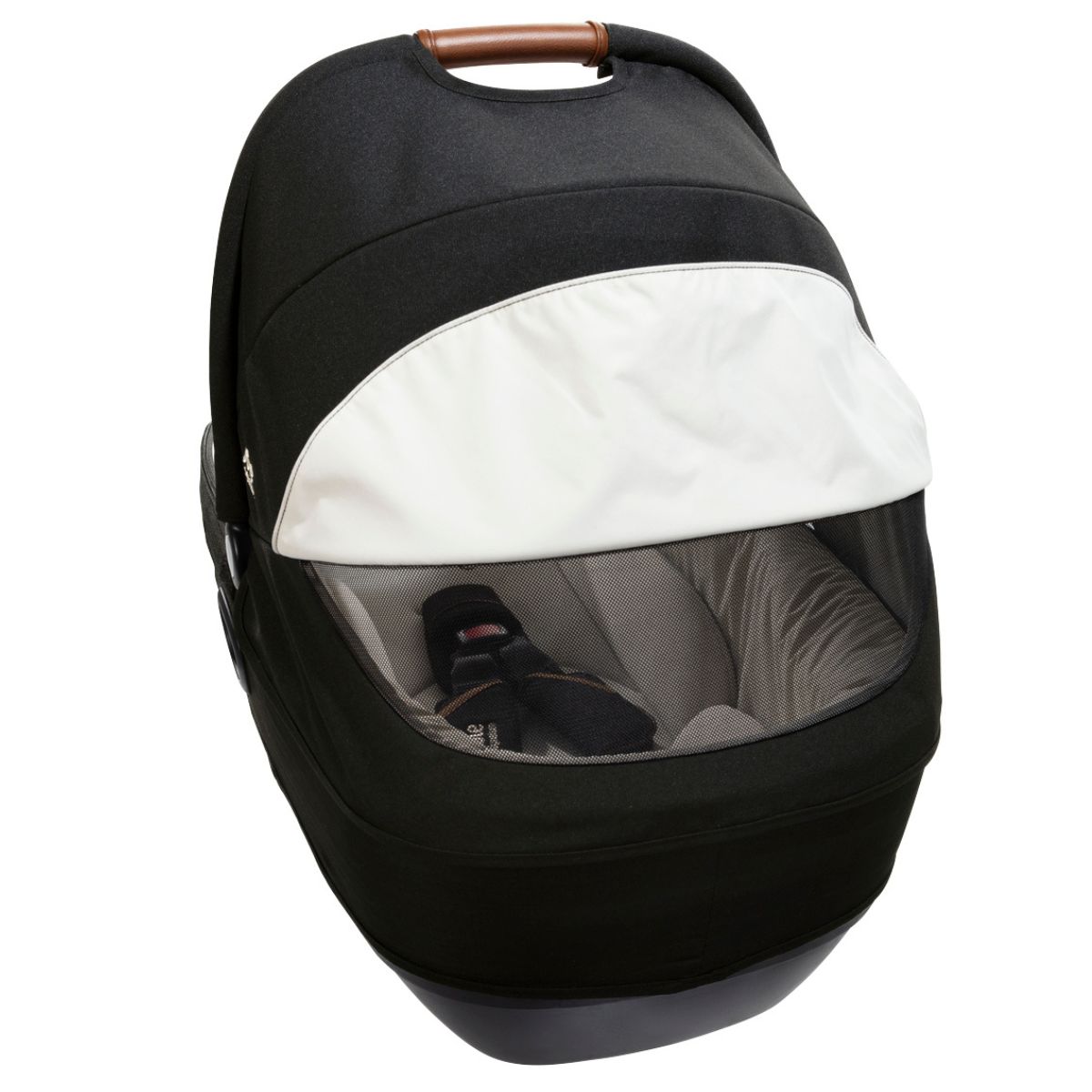 In der Sonne bietet das große Sonnenverdeck einen UV-Schutz von 50+. Wenn das Wetter mal umschlägt, schützt es aber auch vor Schnee und Regen. Nicht zuletzt hält es auch neugierige Blicke von Ihrem Baby fern.