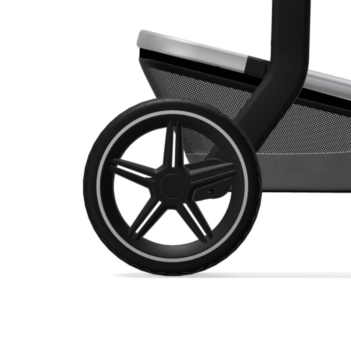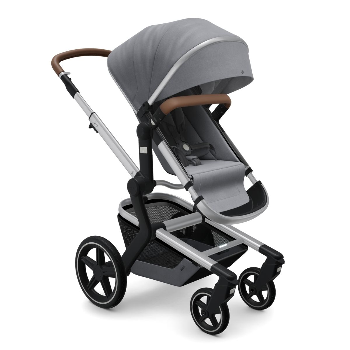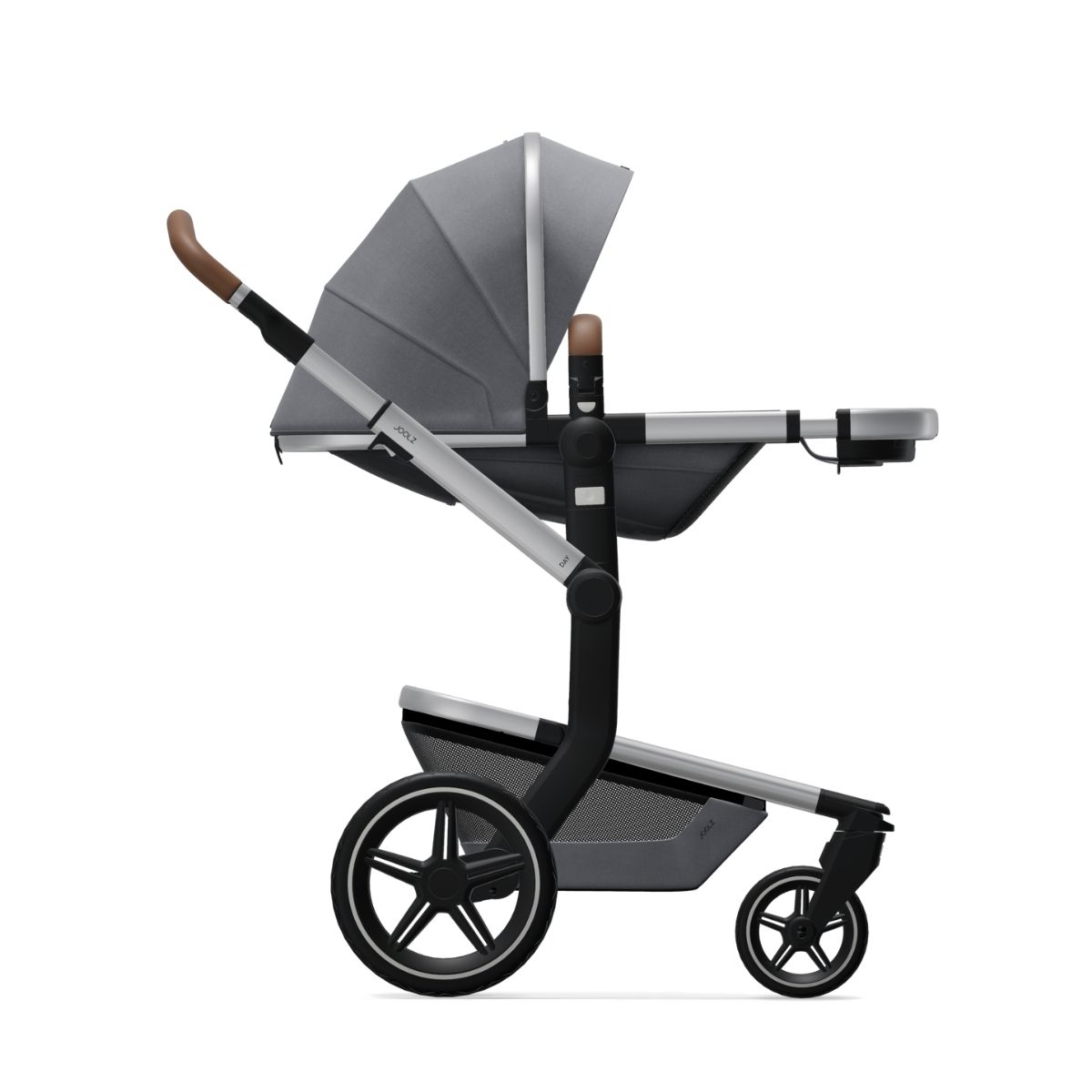 Das neue Raddesign des Joolz Day+ und die verbesserte Federung unterstützen ein angenehmes Schiebe- und Fahrgefühl. Die Bremse ist leicht mit einem Fuß zu bedienen und das Verdeck kann ganz eingefaltet werden oder durch die ausklappbare Sonnenblende verlängert werden. Der Schiebebügel kann in unterschiedliche Höhen eingestellt werden und passt sich dadurch jedem Schiebenden an. Der Joolz Day+ wächst auch mit dem Kind mit. Zuerst liegt es bequem und komfortabel in der großen Wanne auf einer atmungsaktive Matratze mit Kopfpolster. Später sitzt das Kind genauso angenehm im ergonomischen Sitz, bei dem man mit wenigen Handgriffen sowohl die Gurte als auch die Fußstütze der Größe des Kindes anpassen kann. Die Sitzeinheit kann mit Blick nach vorne oder zum Schiebenden aufgesetzt werden. Der Sitzbezug bietet eine eingearbeitete Rücken- und Nackenstütze für ein optimales Sitzgefühl. Die Gurte sind in Schulterhöhe und Gurtlänge stufenlos zu verstellen und die Gurtschnalle ermöglicht ein reibungsloses Anschnallen des Kindes über einen Click & Go Verschluss. Zum Hineinsetzten oder Herausnehmen des Kindes kann der Sicherheitsbügel mit einer Hand geöffnet werden und nach allen Seiten weggedreht werden. Und wenn beim Familienausflug ein Hochstuhl benötigt wird, hat der Day+ Sitz die ideale Tischhöhe.