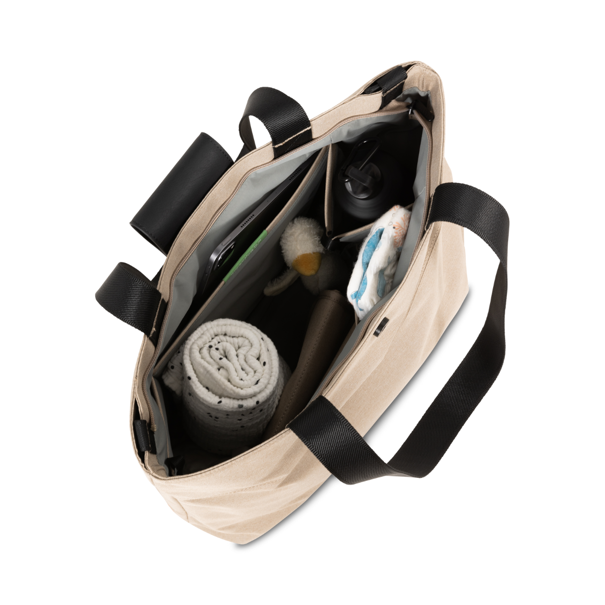 Mit einem Hauptfachvolumen von 20 Litern und 2 ausklappbaren Fächern für Fläschchen bietet die Wickeltasche ausreichend Platz für Ihre Utensilien und Babysachen.