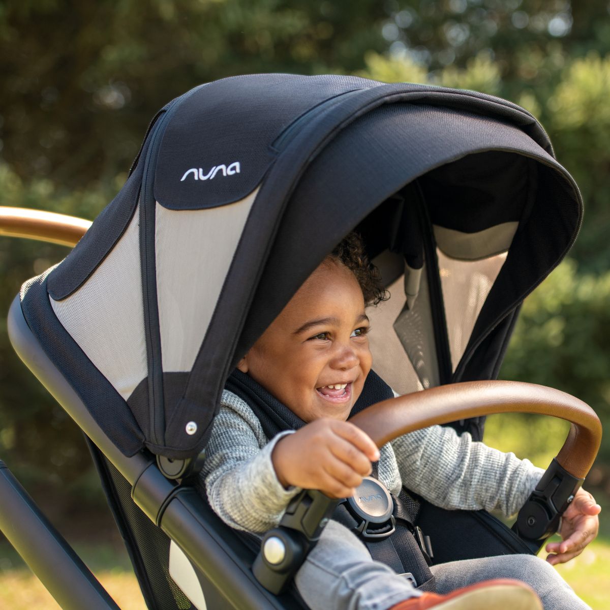 Nuna’s DEMI Grow liefert nicht nur Lösungen für zusätzliche Kinder, sondern auch für Wetterumschwünge. Dafür sind zwei verschiedene Verdecke im Lieferumfang. Das normale Verdeck ist wasserabweisend und bietet einen UV-Schutz von 50+. Außerdem hat es eine Sonnenblende, ein herausziehbares Sonnenverdeck und ein Guckfenster. Das Sommerverdeck ist erweiterbar, bietet einen UV-Schutz von 50+ und hat darüber hinaus Mesh-Einsätze und ein Moskitonetz.