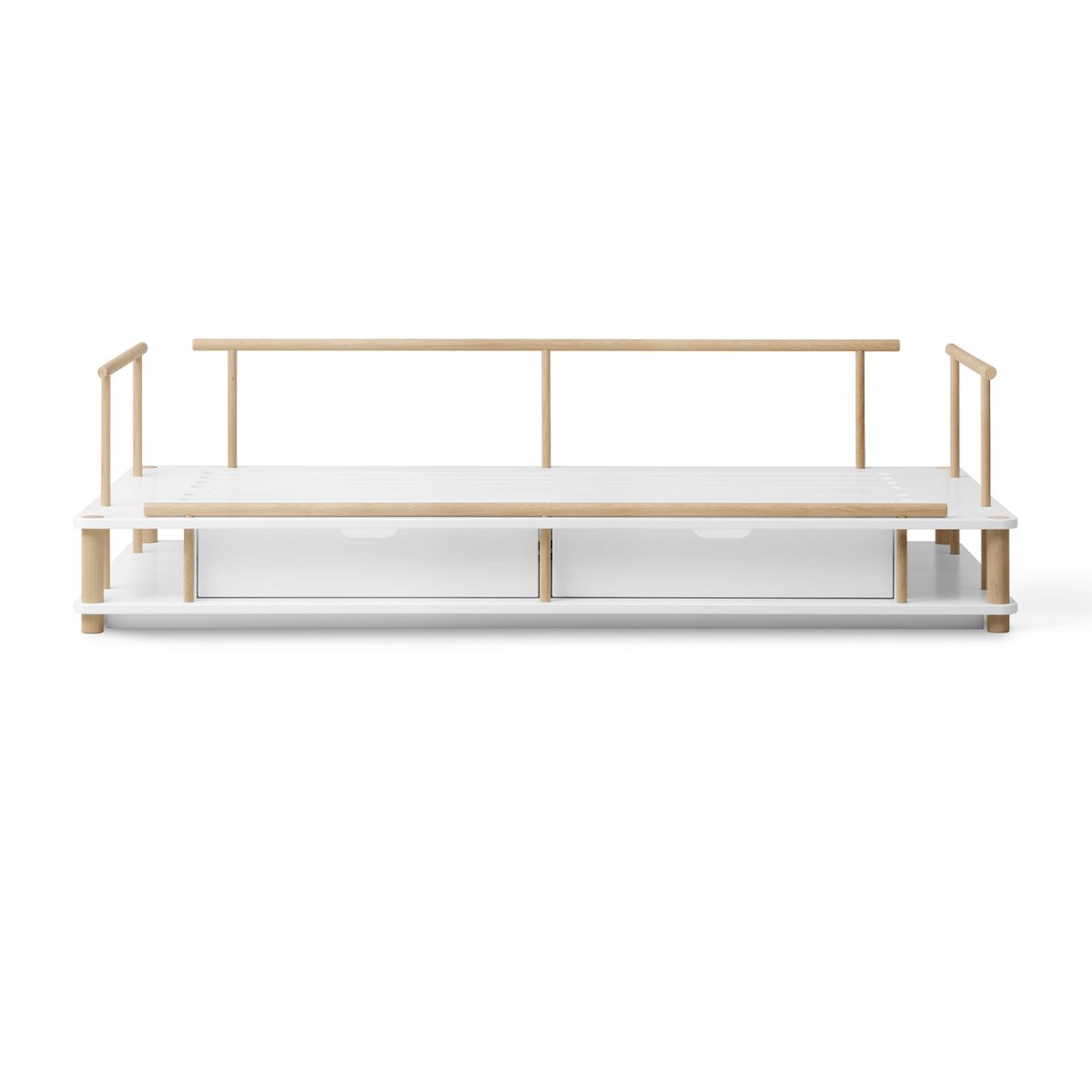 In einem liebevoll gestalteten Kinderzimmer steht das Camp Bettsofa – ein besonderes Möbelstück, das sowohl Funktionalität als auch Stil vereint. Mit seinen großzügigen Maßen von 90 x 180 cm ist es ideal für Kinder ab etwa drei Jahren und begleitet sie bis ins Teenageralter. Die durchdachte Konstruktion des Bettsofas sorgt dafür, dass es für Kleinkinder sicher ist. Durch die niedrigere Bauweise können die Kleinen problemlos auf das Bett herauf oder herab krabbeln, ohne dass die Gefahr besteht, sich zu verletzen. Der integrierte Rausfallschutz bietet zusätzliche Sicherheit und Geborgenheit, sodass Ihr Kind ruhig schlafen kann. Es wird schnell zu einem Rückzugsort an dem in der Nacht die süßesten Träume beginnen. Das Camp Bettsofa beeindruckt nicht nur durch seine Sicherheit, sondern auch durch sein stilvolles Design. Die eleganten Eichenrundstäbe an den Seiten und der Rückenlehne verleihen dem Bett eine zeitlose Ästhetik, die in jedes Kinderzimmer passt. Versteckte Schrauben sorgen für eine klare Linie und eine ansprechende Optik, während praktische Schubladen Platz für Spielsachen oder Bettwäsche bieten. So bleibt das Zimmer stets aufgeräumt und einladend. Ein ganz besonderer Moment entsteht, wenn Sie abends dazu kommen, um eine gute Nacht-Geschichte zu erzählen oder einfach nur ein wenig Zeit mit ihrem Kind zu verbringen. Das Camp Bettsofa bietet auch die Möglichkeit, die Schlafumgebung immer wieder neu zu gestalten. Mit bunten Kissen, weichen Decken und Plaids verwandelt es sich schnell in eine gemütliche Sofalandschaft, die zum Spielen und Verweilen einlädt. So wird das Bett nicht nur zum Schlafplatz, sondern auch zu einem Ort voller Fantasie und Abenteuer!