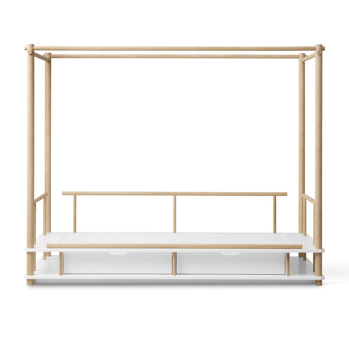 Das Camp Himmelbett verwandelt jedes Kinderzimmer in einen Ort voller Magie und Geborgenheit. Es ist nicht nur total gemütlich, sondern bietet auch mit 90 x 180 cm genug Platz für all die großen Träume die Ihr Kleines abends sieht! Mit seiner niedrigen Bauweise bietet es eine sichere Atmosphäre für die Kleinen, die aus ihrem Babybett herausgewachsen sind. Vielleicht schlüpfen Sie abends mit unter die Decke, um einen beruhigenden Arm um die Schultern zu legen, wenn der Schlaf ruft. Das Himmelbett aus edlem Eichenholz ist nicht nur ein funktionaler Schlafplatz, sondern auch eine stilvolle Ergänzung im Kinderzimmer. Seine elegante Konstruktion mit versteckten Schrauben und praktischen Schubladen sorgt für eine aufgeräumte und ästhetische Umgebung. Wenn Ihr Kind schließlich aus dem Himmelbett herauswächst, wird es im Handumdrehen zu einem gemütlichen Bettsofa. Mit seinem niedrigen Eichenrahmen und der Möglichkeit, es mit Kissen und Decken zu schmücken, wird es zu einer stilvollen Sofalandschaft, die zum Entspannen und Spielen einlädt.