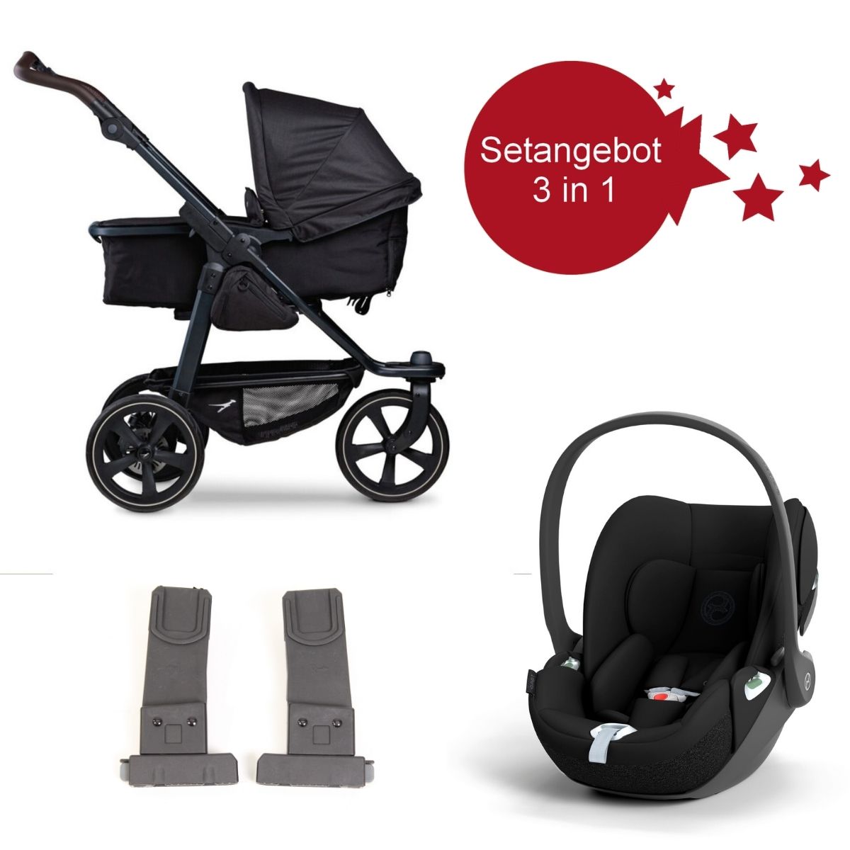Mit diesem Set sind Sie für wirklich jede Situation der ersten gemeinsamen Familienjahre ausgestattet. Der TFK Mono 2 ist ein Kombikinderwagen für jedes Gelände. Vom schnellen Spaziergang in der Nachbarschaft, zu einer Joggingrunde bis hin zu einer längeren Wanderung, der Mono 2 ist für jede Situation bereit. Dabei können Sie flexibel zwischen Liegewanne und Sportsitz wechseln. In Kombination mit dem TFK Mono 2 Adapter und der Cybex Cloud T Babyschale können Sie sogar blitzschnell vom Auto zum Kinderwagen wechseln ohne dabei Ihr Baby umsetzen zu müssen!