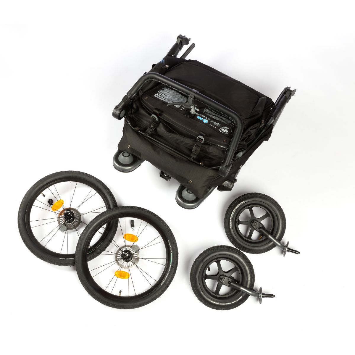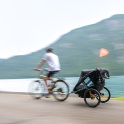 Es reichen wenige Handgriffe, um den Fahrradanhänger zu einem Kinderwagen umzubauen. Sowohl auf dem Land als auch in der Stadt überzeugt er mit hervorragenden Fahreigenschaften. Bei Bedarf lässt er sich klein zusammenklappen und verstauen. Für ein besonders kleines Packmaß lassen sich zusätzlich die Räder abnehmen.