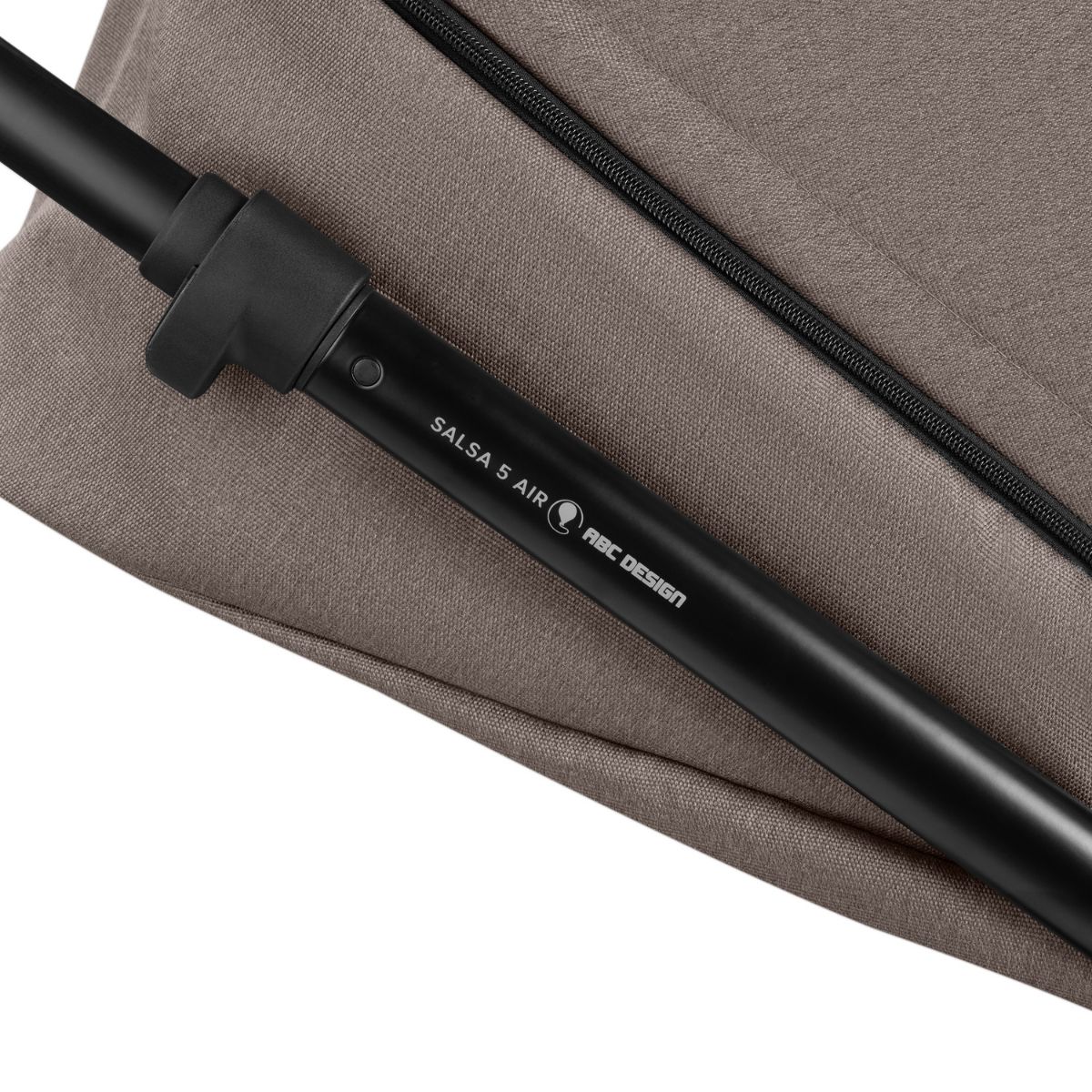 The ABC Design Salsa 5 Air pushchair is your reliable friend for all the important events that family life has to offer. With its large pneumatic wheels and sophisticated suspension, the Salsa 5 Air glides smoothly over pavements and uneven paths, making every walk pleasant and comfortable. The carrycot is easy to fold thanks to the new folding system - simply press the lever on the underside and it is stored flat. You can easily adjust the hood of the carrycot with one hand, which is particularly practical when you are holding your baby in your arms. The CozyCloud® mattress and ventilation windows ensure a comfortable sleeping environment and good air exchange, while the UV protection canopy protects your child in sunny weather. As your baby gets older, the Salsa 5 Air transforms effortlessly into a pushchair that adapts flexibly to your child's needs. The spacious XXL shopping basket, the safe HappyBelt® 5-point harness system and the simple folding mechanism make the pushchair a practical companion for every day. With the Salsa 5 Air, you can enjoy maximum flexibility and comfort on every outing.