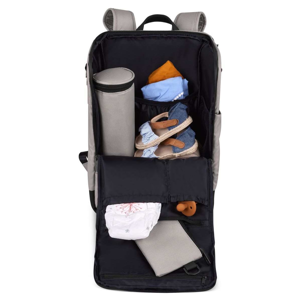 The ABC Design Tour changing backpack is the perfect companion for all parents who want to be flexible and well organised in everyday life. This rucksack not only offers sufficient space and well thought-out organisation options for all important baby utensils, but also impresses with its high-quality workmanship and elegant design that goes with any outfit. With numerous compartments and pockets, the changing backpack ensures that nappies, wet wipes, bottles and personal items such as keys and mobile phone are always within easy reach and safely stowed away. The spacious front pocket and six other smaller and larger side pockets offer ideal organisation options for anyone who loves order. Small zip pockets and practical compartments prevent small items from getting lost. There are two pockets on the inside, including a wet pocket. The changing rucksack also includes a practical, soft padded changing mat, a pouch pocket and an insulated, removable bottle holder, which ensures that baby food and drinks stay warm or cold for longer. The large, front-opening main compartment offers plenty of space - ideal for shopping in the city or a long walk. The Tour changing backpack can be quickly and easily attached to all ABC Design pushchair models using the universal brackets (sold separately). Whether you are going on an outing, for a walk or shopping - with the ABC Design Tour changing backpack you are always well equipped and have everything you need to hand.