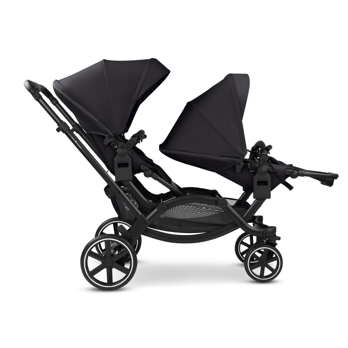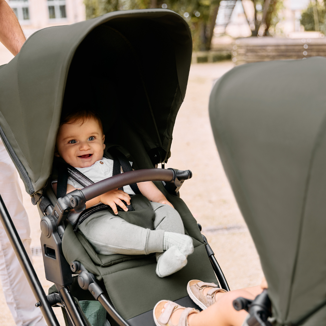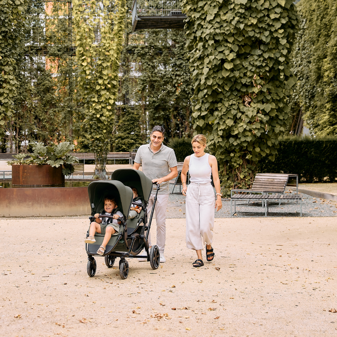 In the Zoom 2, your children sit one behind the other on the same level, which ensures optimum sitting and reclining comfort. A special highlight is that the two seat units can also be turned towards each other - a real rarity and a fantastic feature that children particularly love, as it makes it easy for them to socialise with each other. Both have enough space to discover the world without having to compromise on comfort. Thanks to the flexible combination options, you can easily adapt the Zoom 2 to your family's needs - whether with a seat unit, carrycot or car seat. This exceptional versatility makes it ideal for families with twins or siblings of different ages. Enjoy carefree outings and adventures together with a pushchair that grows with your family!