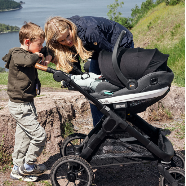 The reclining position of the Go Beyond is an advantage in many situations. Firstly, it is the safest and most gentle solution for babies when travelling, and thanks to its very flat reclining position, the infant car seat can also be used on the pushchair frame for a limited time without feeling guilty. It is not uncommon for babies to fall asleep while you are still doing something. Thanks to the Go Beyond, it is not absolutely necessary to move them into the pushchair. The little ones lie in a comfortable and healthy back position and can continue to sleep while the infant car seat is attached to the pushchair frame with a click. The easy removal of the infant car seat is particularly practical, as the fastening sides can be pulled apart with light pressure and easily detached from the frame. No more awkward jolting that could wake your little one. The Peekaboo sun canopy, which can be flexibly adjusted depending on the amount of sunlight, prevents the sun from shining in your little one's face and ensures a darkened environment. Optional accessories such as a summer cover round off the range perfectly.