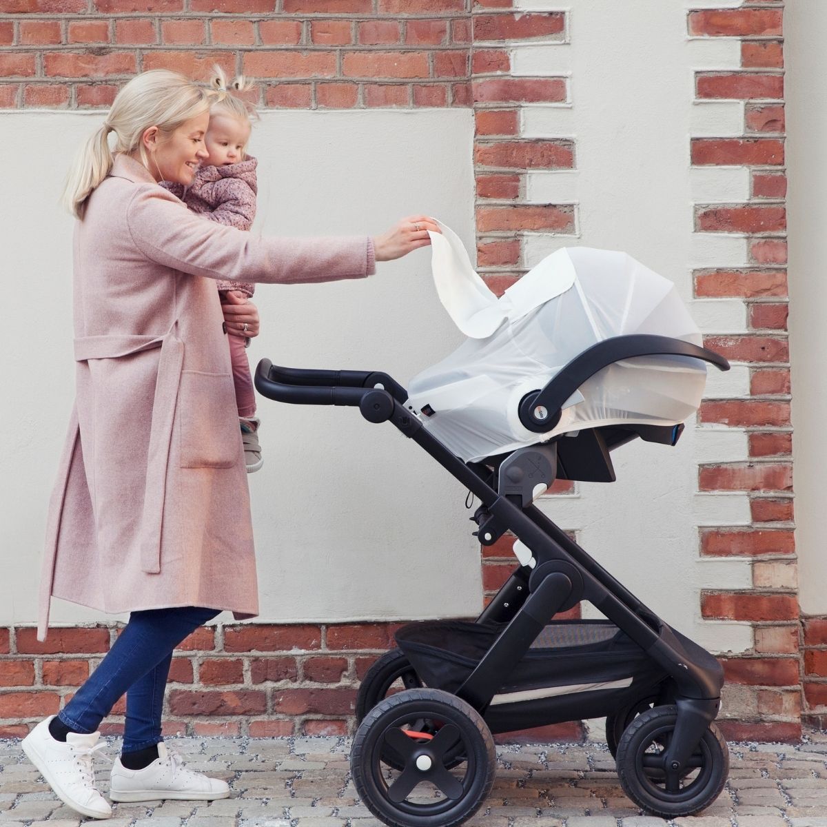 This mesh net reliably protects your baby against harmful sun rays and annoying insects. You can decide whether you only need the insect screen. If the sun is shining strongly, you can simply fold down the additional sun protection with UPF50+. The material is naturally breathable and thus allows good air circulation. The sun and insect protection is adapted to all models of the BeSafe iZi Go Modular and the BeSafe iZi Go infant carriers and leaves the carry handle free so that you can continue to use the infant carrier without restrictions.