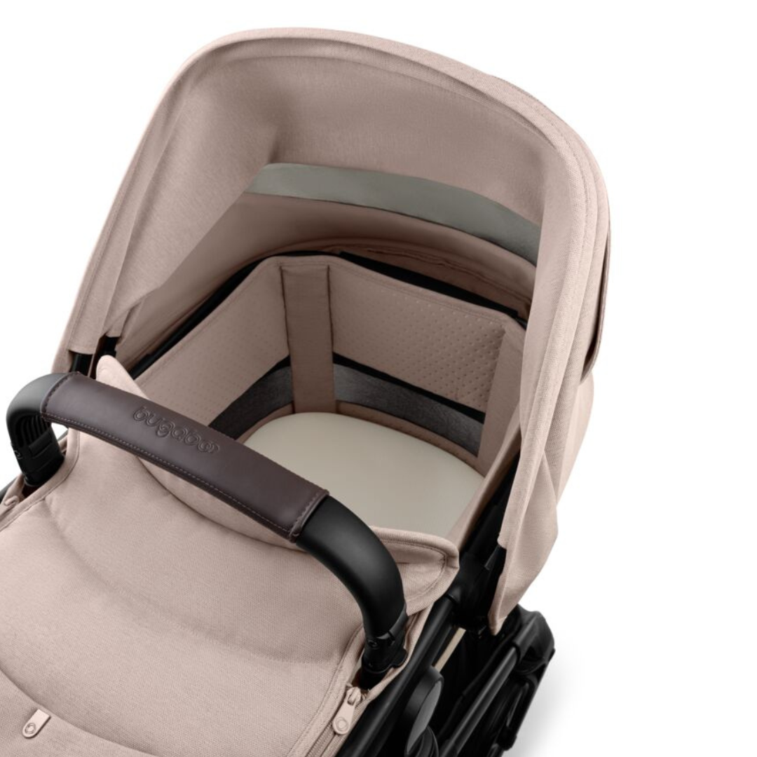 The carrycot of the Bugaboo Fox 5 Renew offers your newborn the ultimate comfort for restful naps. With its ventilation inserts, the carrycot ensures good ventilation, while the specially developed PureBreeze mattress maximises breathability. It is antibacterial and has two sides: a warm fleece side for winter and a fresh mesh surface for summer - perfect for regulating your baby's temperature comfortably at all times. Your little one will feel comfortable and secure all year round, whether on a cosy outing or a restful night's sleep.