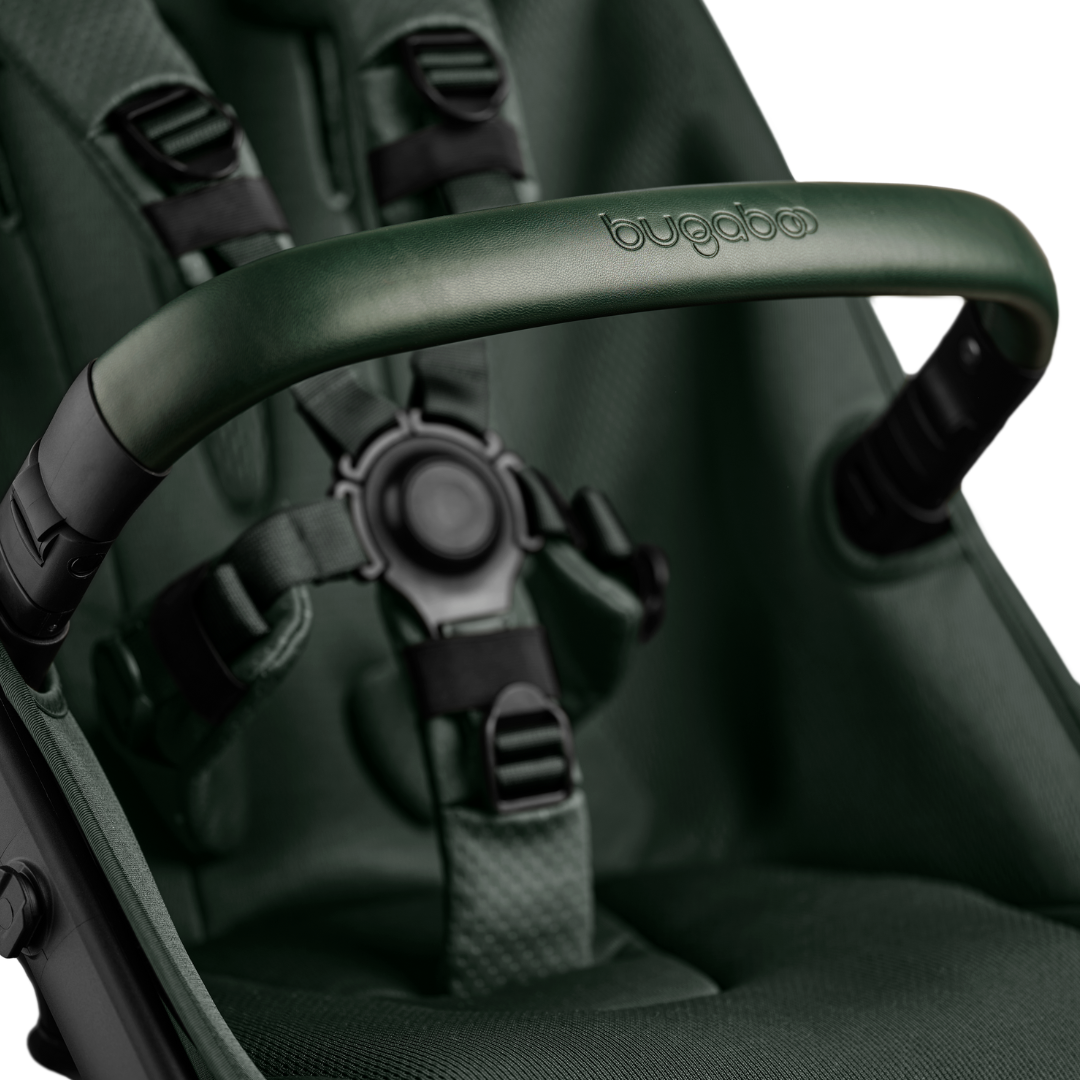 The sun canopy of the Bugaboo Fox 5 Noir Limited Edition impresses with its elegant fabric with brushed weave made from recycled material, decorated with subtle embossed dots. The rim cover has a modern design with a shiny, polished surface, while the lower basket is closed and elegantly designed in a matching colour. The 5-point harness is equipped with particularly soft padding that offers your baby maximum seating comfort