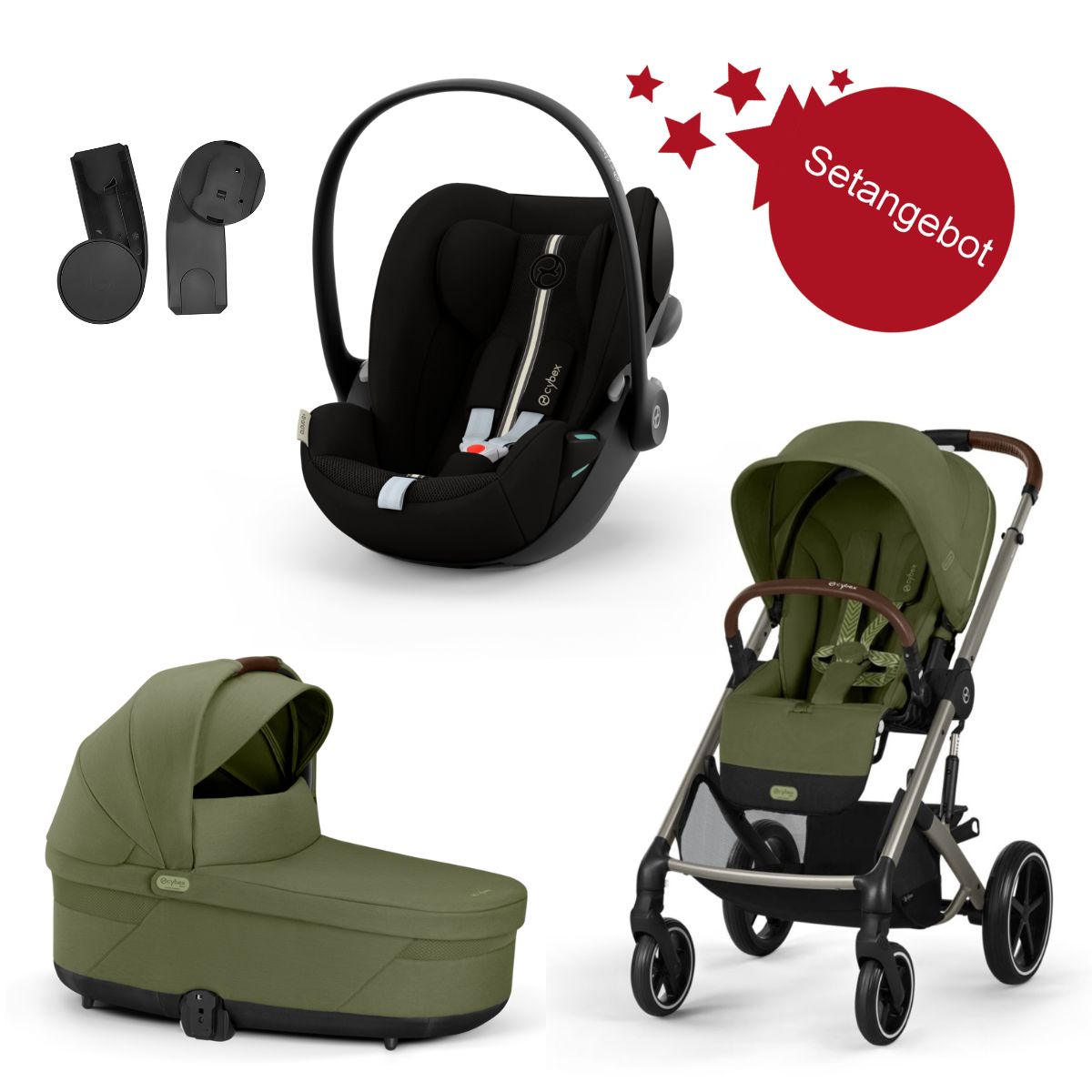 Scope of delivery: Cybex Balios S Lux pushchair, Cybex Cot S Lux carrycot, carrycot mattress, Cloud G Plus i-Size infant car seat, newborn insert, infant car seat adapter