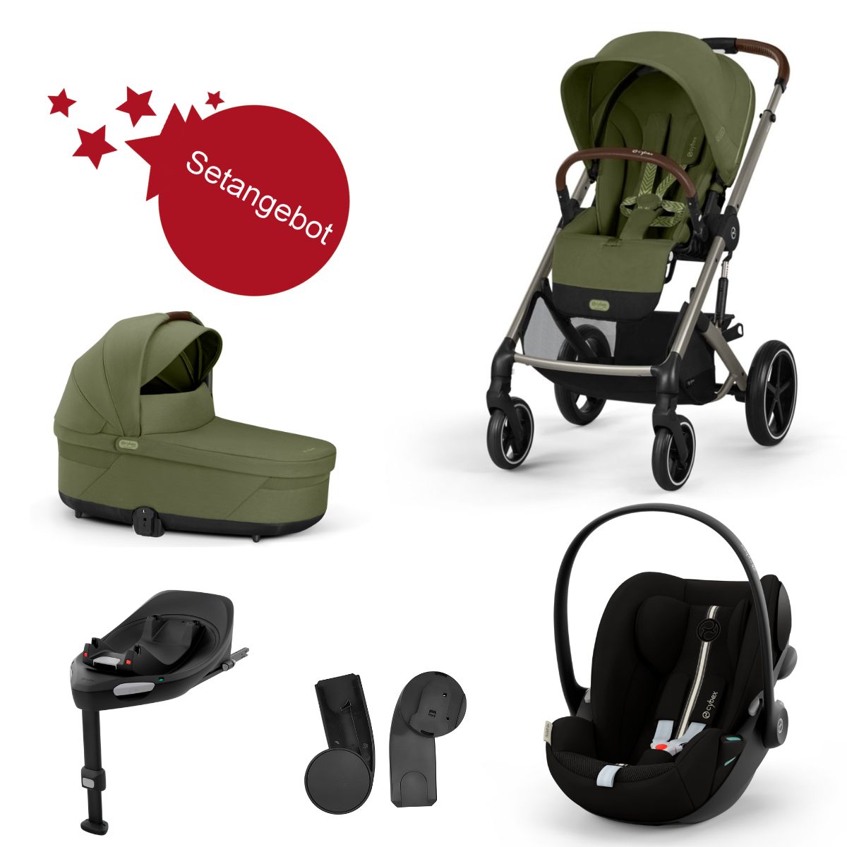 Discover the Cybex Balios 5-in-1 set from the new collection - the perfect solution for active families who value flexibility, comfort and safety. This well thought-out set contains everything you need for the first years of your child's life: the Cybex Balios S Lux pushchair for relaxed walks, the Cybex Cot S carrycot for cosy rides, the Cybex Cloud G infant car seat for safe transport in the car, the Cybex Base G base station for easy and safe installation and the Cybex infant car seat adapter for effortless attachment of the infant car seat to the Balios pushchair. With this comprehensive set, you are perfectly equipped to make every outing with your little one unforgettable - whether you are out shopping, in the park or travelling. Enjoy the luxury and versatility that the Cybex Balios 5-in-1 set offers you while your child is comfortably and safely by your side!