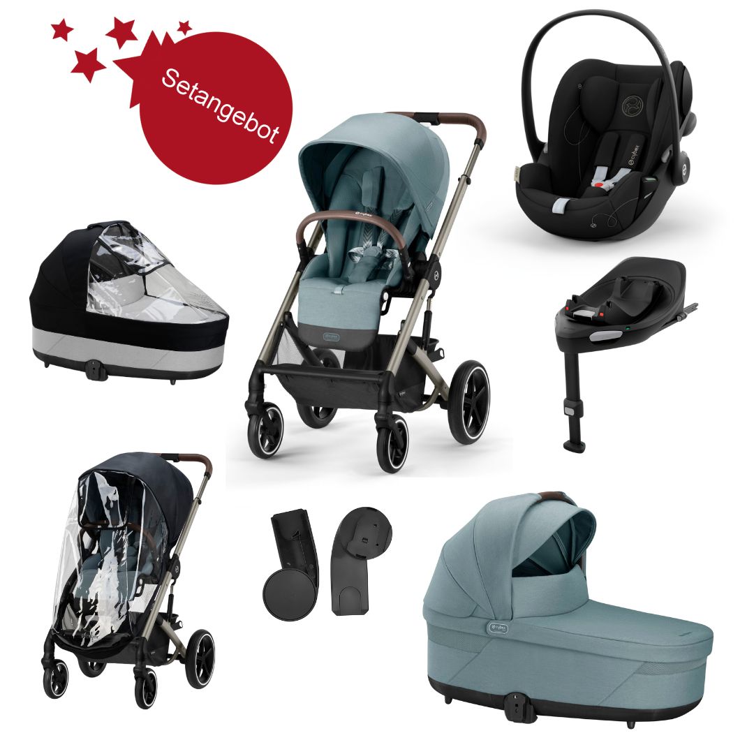 Welcome to the Cybex Balios S Lux 7-in-1 set, which offers everything urban families need for on the go! This comprehensive set includes the versatile Balios S Lux baby carriage, which is a reliable companion from the first days together right through to toddlerhood. So that you can be out and about with your baby from birth, this set includes the cozy Cot S Lux carrycot. It offers your newborn a protected environment with a soft mattress and a spacious sun canopy. For rainy days, rain covers are included for both the Cot S carrycot and the seat unit of the Balios S Lux, offering comfort and protection. You also have the option of using the Cybex adapters to attach your Cybex infant car seat to the baby carriage without any problems, allowing seamless travel between car and baby carriage. For mobility by car, the set also includes the Cybex Cloud G infant car seat, which can be used from a height of 40 cm and grows with the child. If you would like a Plus fabric or a different color of the Cybex Cloud G, you are welcome to make a best price request so that we can find the optimal solution for you.