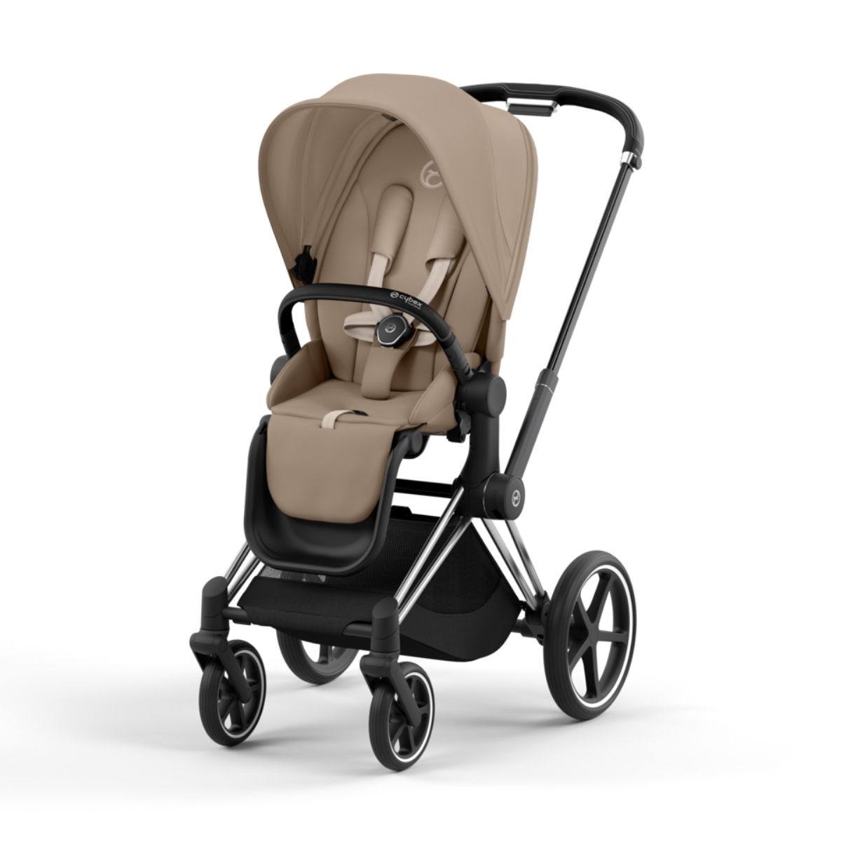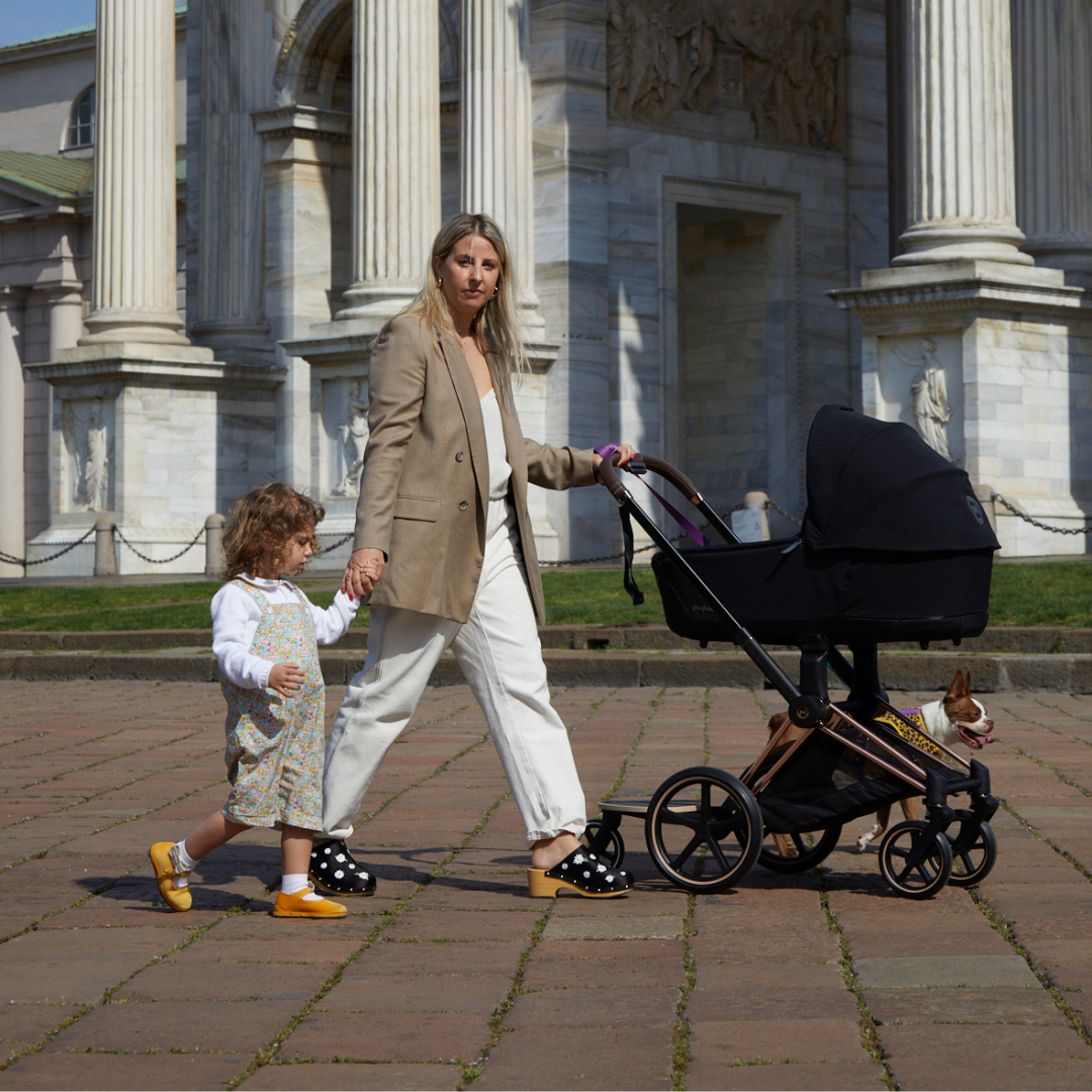 The Cybex Priam 4 pushchair is not only a functional all-rounder for everyday life with a child, it is also a real fashion statement for design-conscious parents. With its extraordinary combination of high-quality workmanship, fine materials and stylish variety of colours, the Priam 4 clearly stands out from the crowd. The individually selectable frame colours - whether elegant rose gold, classic matt black, modern chrome black or stylish chrome brown - set sophisticated accents and adapt perfectly to your personal look. Added to this are the versatile fabric designs in classic shades such as black, grey or dark blue, which create fashionable highlights. Thanks to this design freedom, the Priam 4 becomes an expression of your own style - luxurious, urban and absolutely trend-conscious. A pushchair that not only impresses with its function, but above all with its elegant look. Perfect for parents who love fashion and value a harmonious overall look when travelling.