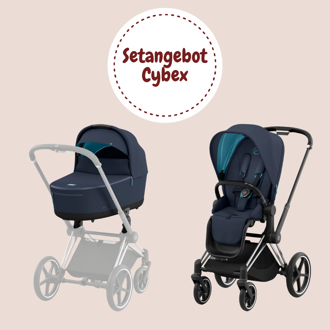Why is the Priam 4 so good value at the moment? This model combines state-of-the-art technology with an attractive design: the current 2024/2025 generation frame is combined with fabric covers from the 2023 collection. As these colour variants have been removed from the range, this results in a particularly attractive price. You therefore get a cutting-edge quality product with a full range of functions - but at a significantly reduced price. Start an exciting new chapter in your life with the Cybex Priam 4 set offer in Dark Navy. This exclusive set accompanies you through your child's first years in style and brings not only functionality but also a touch of luxury to your everyday life. In an elegant dark blue colour that is both timeless and modern, the Cybex Priam 4 pushchair exudes understated sophistication. With its versatile design, it adapts flexibly to your needs, whether as a cosy retreat for your baby for the first few months or as a practical sports seat for the adventures of toddlerhood. The set also includes the Cybex Cloud G infant car seat, which is perfectly matched to the Priam 4. Its ergonomic shape and outstanding safety features offer your newborn the best protection and comfort. The matching Base G ensures safe and uncomplicated installation in the car so that you can relax and concentrate on the journey. Together, these components form a harmonious ensemble that accompanies you and your baby safely and stylishly through every phase of life.