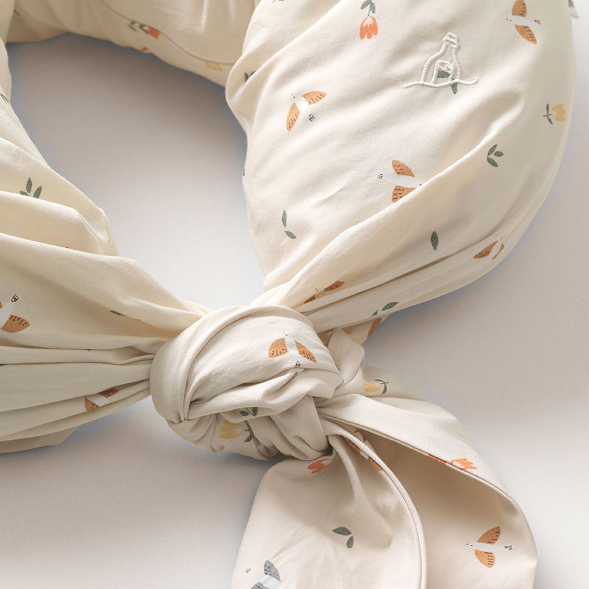 Experience pure cosiness with our Dear April kapok nursing pillow - the perfect companion for relaxed breastfeeding or feeding times with your baby. Designed in a size that moulds seamlessly to your body and provides a soft and secure surface for your little one to lie on, the Dear April nursing pillow allows you to have a harmonious and comfortable time together. The straps around the waist provide extra stability while giving you the freedom to move your arms freely. Filled with kapok, a unique and sustainable organic fibre, our nursing pillow is not only good for your baby, but also for the environment. Kapok is 100% sustainable, biodegradable and harvested without damaging the kapok tree. It is hypoallergenic, temperature regulating, breathable and antibacterial - the perfect choice for your family. Enjoy those special moments of togetherness to the full!