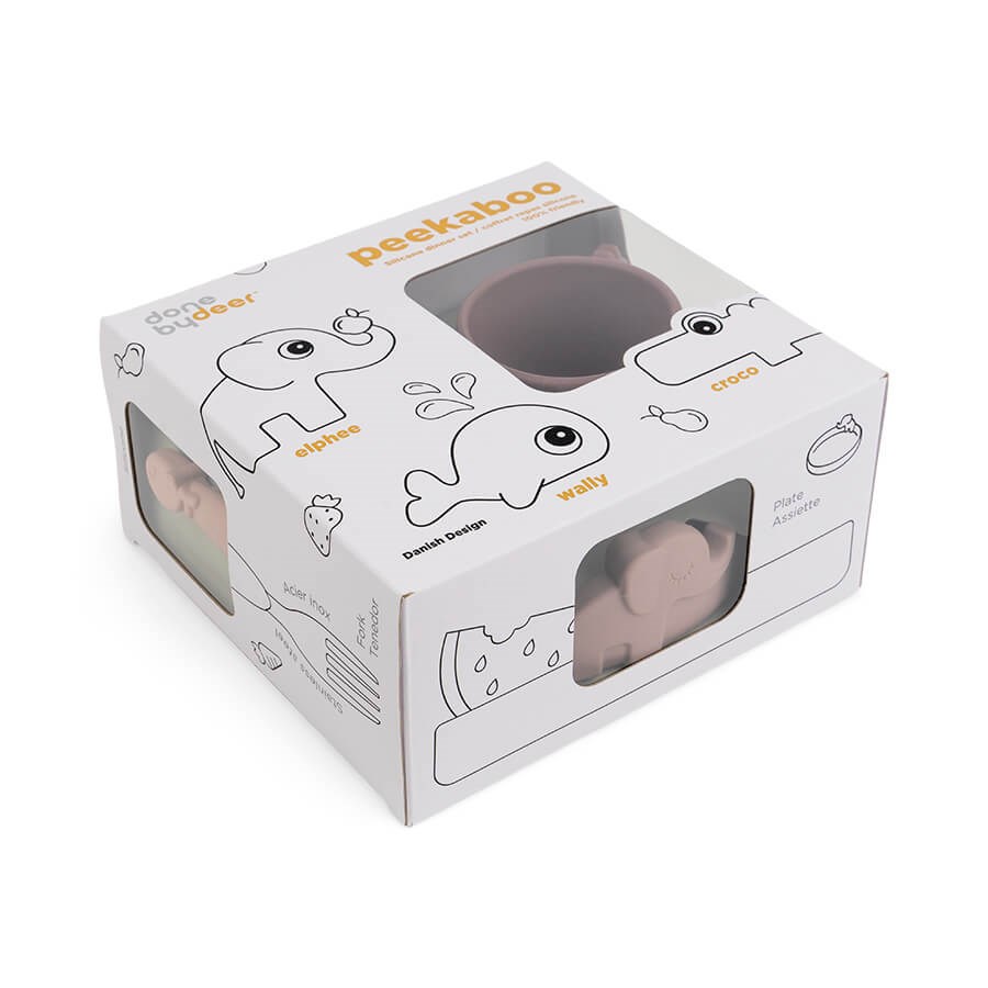 Your little one's first own crockery set couldn't have a better design! With the Peekabo "Deer Friends" crockery set, independent eating is really fun. With the three different hidden animal motifs, your child will always have something to discover. The set includes a plate, bowl, cup and fork!