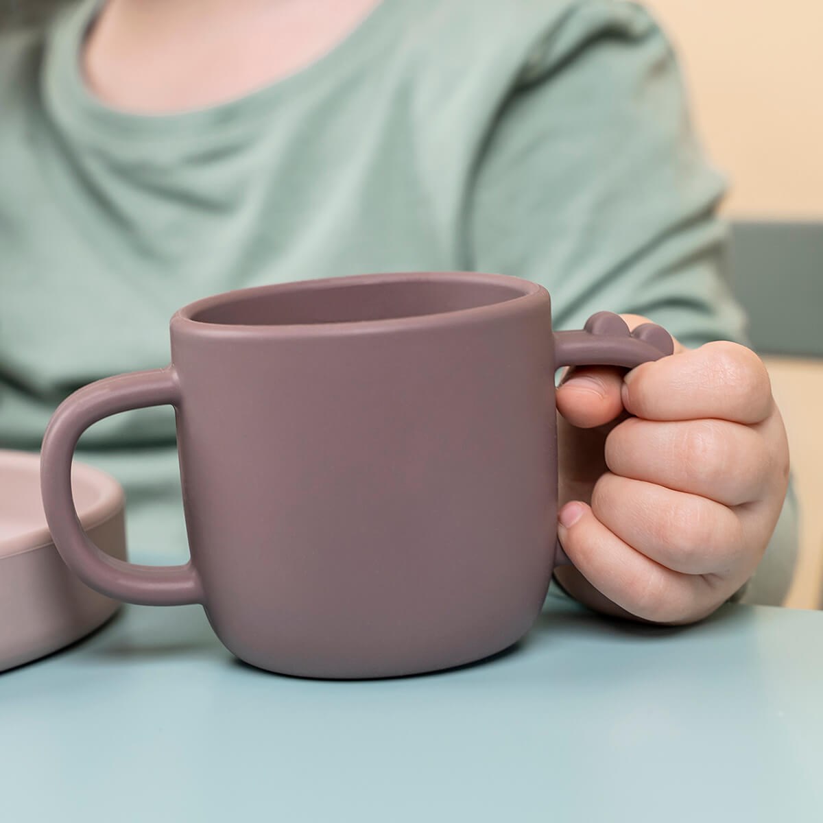 Croco, the exotic crocodile, makes this mug something very special. When everything has been drunk, Croco's head appears, making drinking a fun adventure for your child. The two handles make it very easy for small children's hands to grip the cup. The unbreakable material properties make this cup perfect for learning to drink from an open cup. The cup can be used in a variety of ways - in the oven, microwave and freezer. The Peekaboo Croco mug is also a real eye-catcher! You can choose between different, modern colours, which can also be perfectly combined with other products from the Meet&Eat collection by Done by Deer. Material: 100% food-grade silicone Care instructions: Dishwasher safe up to 100°C. Suitable for the microwave. Temperature resistant from -40°C to 230°C Size: ⌀ 7 cm, Height: 6.5 cm Capacity: 170 ml