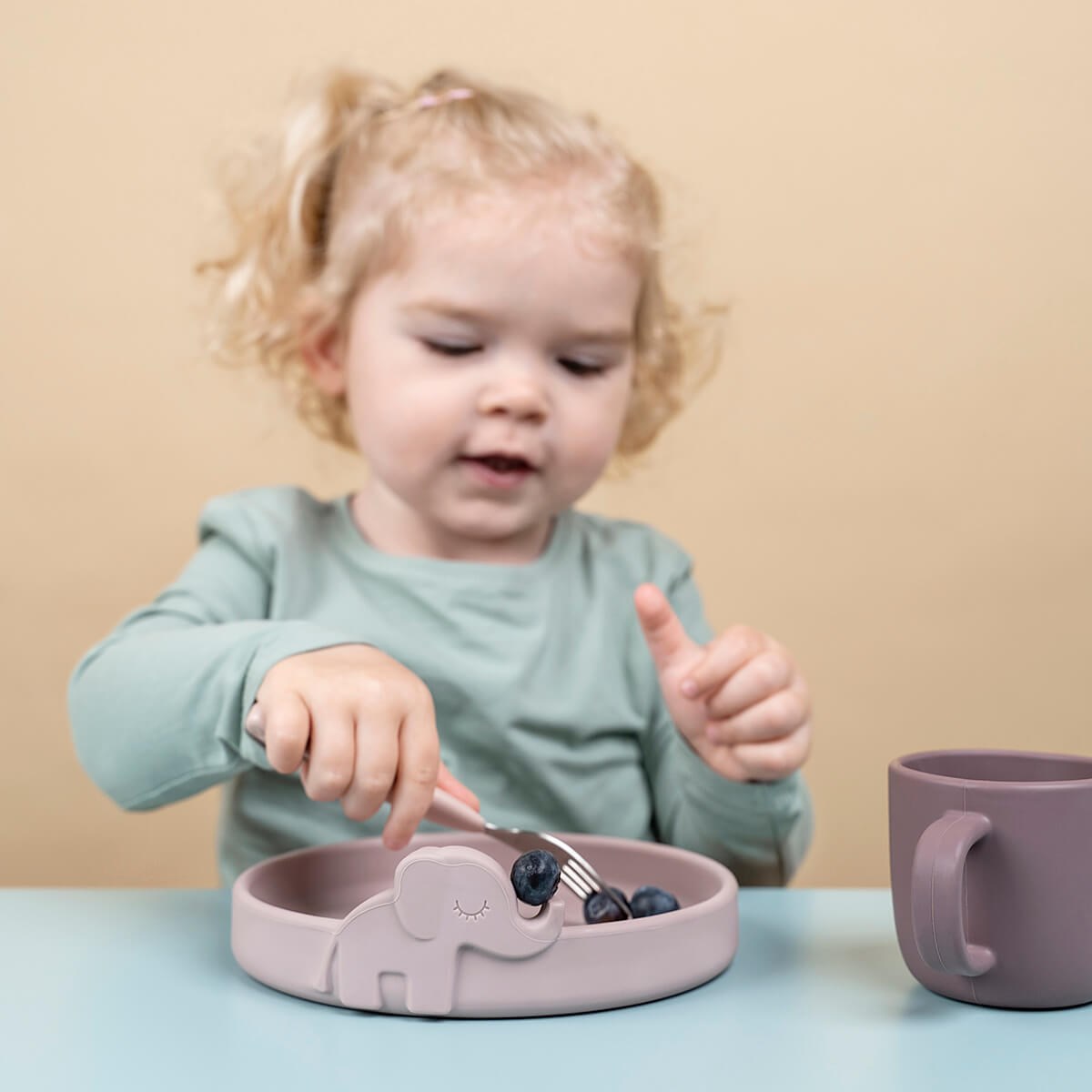 Eating with small children can quickly become messy, but with the Elphee silicone placemat, the table stays clean and mealtimes relaxed. The raised edges at the sides and back catch spillages and food, while the narrow front edge ensures that nothing slips away. Made from 100% food-safe, BPA-free silicone, it is not only safe for your child, but also super easy to clean - simply wipe clean or put in the dishwasher. The cute Elphee motif with little footprints also makes the placemat a delightful eye-catcher and ensures that your child always discovers something new at mealtimes.Features:Age: 0+Material: 100% food-safe siliconeDimensions: 40 x 28 x H 5 cmCare instructions: Dishwasher safe up to 100°C. Microwave safe. Temperature resistant: -40°C to 230°CScope of delivery: Done by Deer silicone placemat with high rim