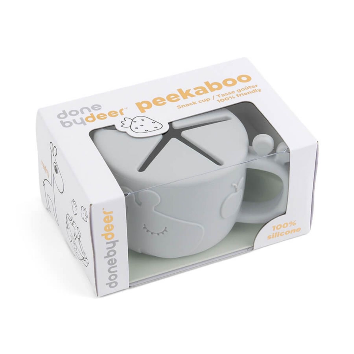 Done by Deer Peekabo crockery set Deer Friends Your little one's first own crockery set couldn't have a better design! With the Peekabo "Deer Friends" crockery set, independent eating is really fun. With the three different hidden animal motifs, your child will always have something to discover. The set includes a plate, bowl, cup and fork! Features: Material: 100% food-grade silicone, stainless steel: 18/8. Plate dimensions: 16 cm Fork dimensions: 14.5 cm Cup dimensions: 170 ml. Plate/cup: Dishwasher safe up to 100° C. Microwave safe. Temperature resistant: -40° C to 230° C. Fork: Dishwasher-safe up to 70° C. Do not use in the microwave