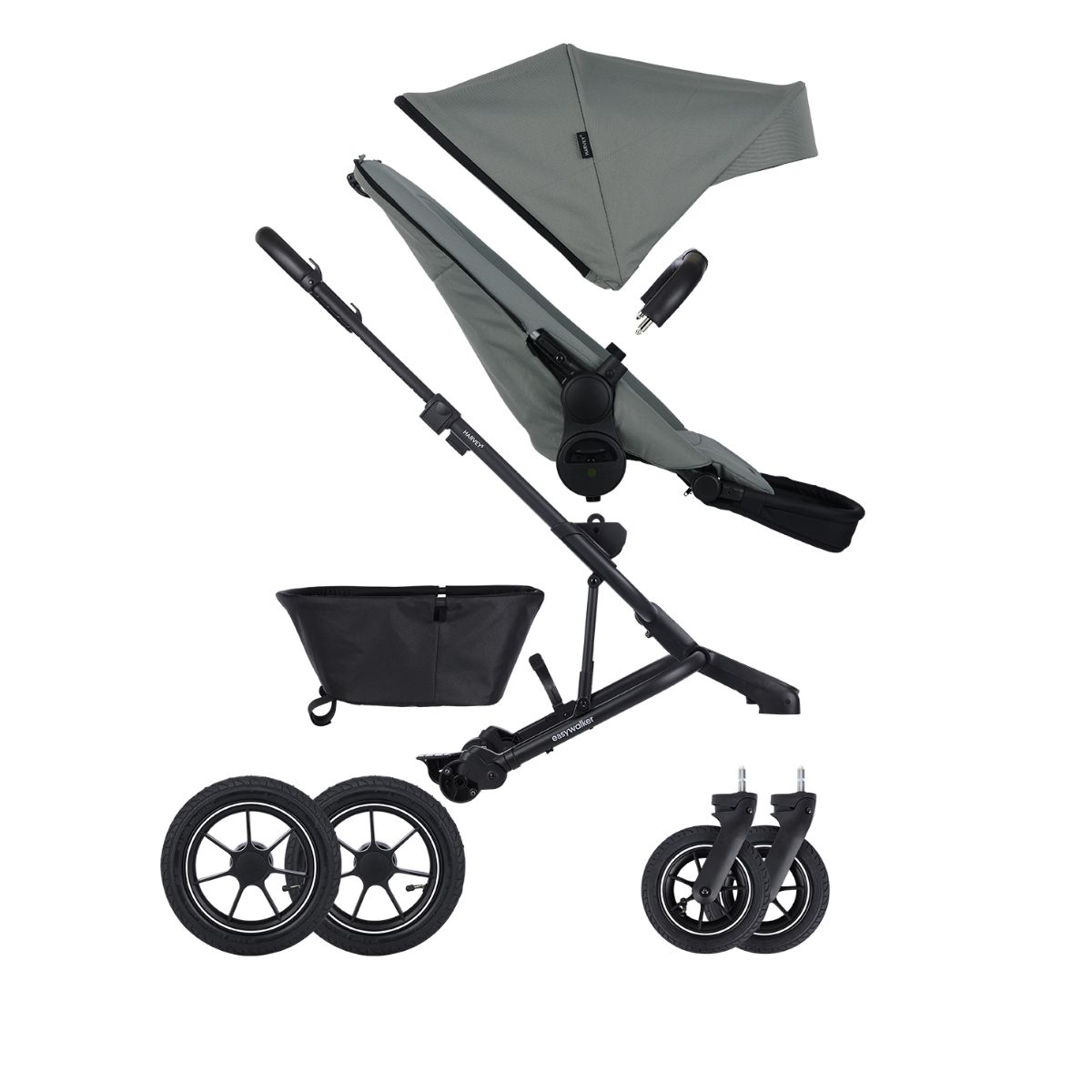 You will like the Easywalker Harvey 5 Air pushchair so much that you will be relieved that it grows with your child without any problems. The carrycot can easily be replaced with a sports seat. The pushchair can also be used as a duo version, making it ideal for twins or two children of different ages. Convince yourself of this all-terrain professional.