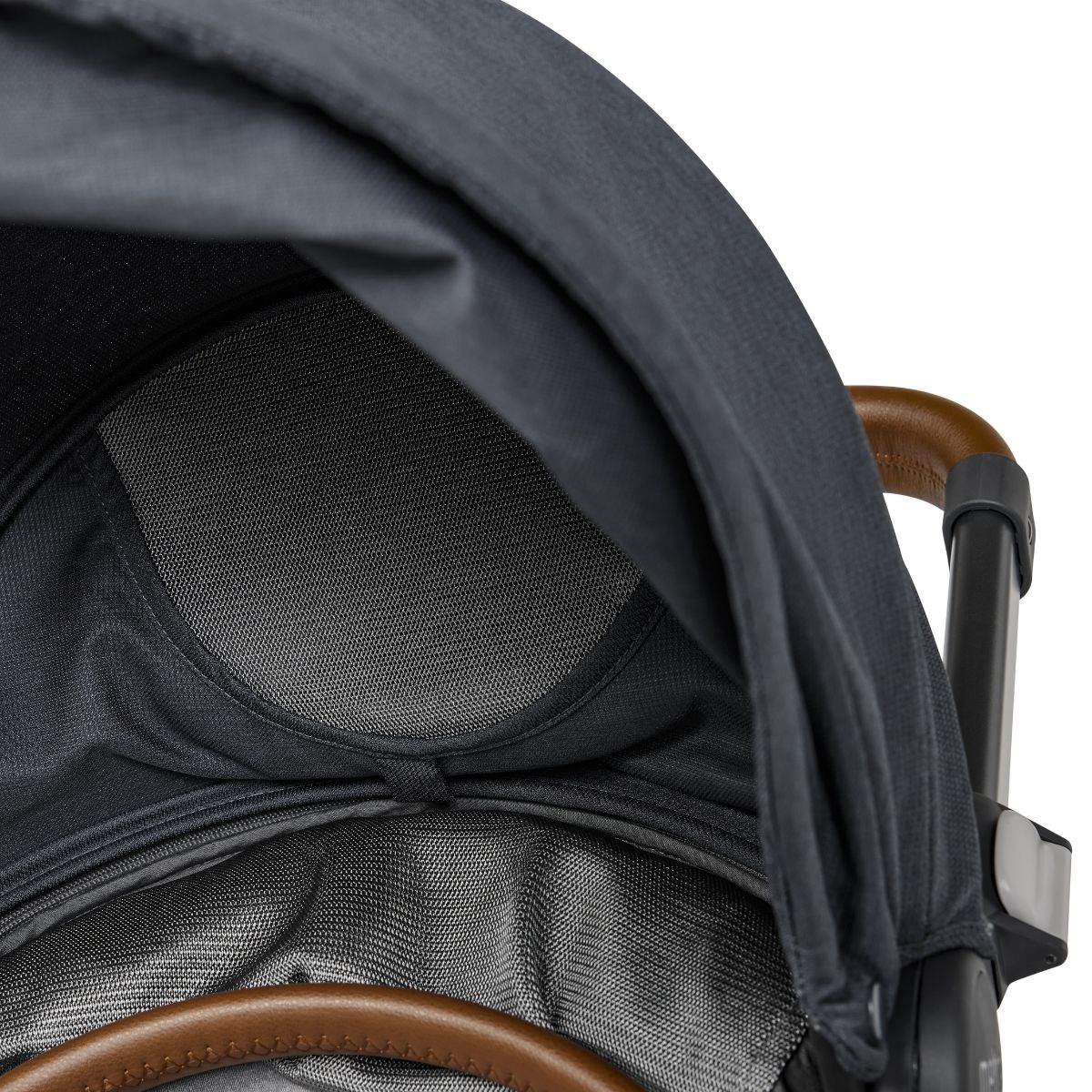 The Metro+ is available in a classic slate grey or black. If these colours are too grey and black for you, you can remove the sun canopy and replace it with a colourful one. A sunny yellow brings colour into play even on rainy days and the rose is an appealing dark pink shade that not only appeals to girls. The trendy colours change the look and feel of your Metro+ buggy. Functionality in the form of sun protection and shade combined with a customised design for your Metro Plus. This turns your Metro+ pushchair into a real highlight. The canopy can be replaced quickly and intuitively and, like the other Metro+ canopies, also has a viewing and ventilation window. By opening the fabric flap, which is closed with a magnet, you can create optimum air circulation under the canopy on hot days and you can also watch your child through the mesh window. A Metro+ sun canopy... ... is attached directly to the Metro+ frame. ... provides shade and UPF 50+ sun protection. ... has a mesh window for better air circulation ... has a magnetic fastener so that you can also see into the child through the mesh window. ... only fits on a Metro+ pushchair.