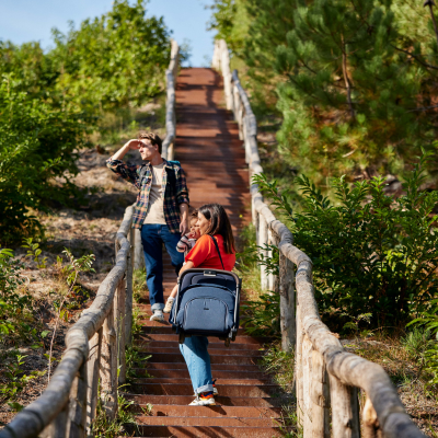 Families of explorers are out and about in all weathers. A shady spot is particularly important for our little travellers. The sun canopy of the Joolz Aer+ is extendable and has an extra window with mesh inserts so that air can circulate even on warmer days.