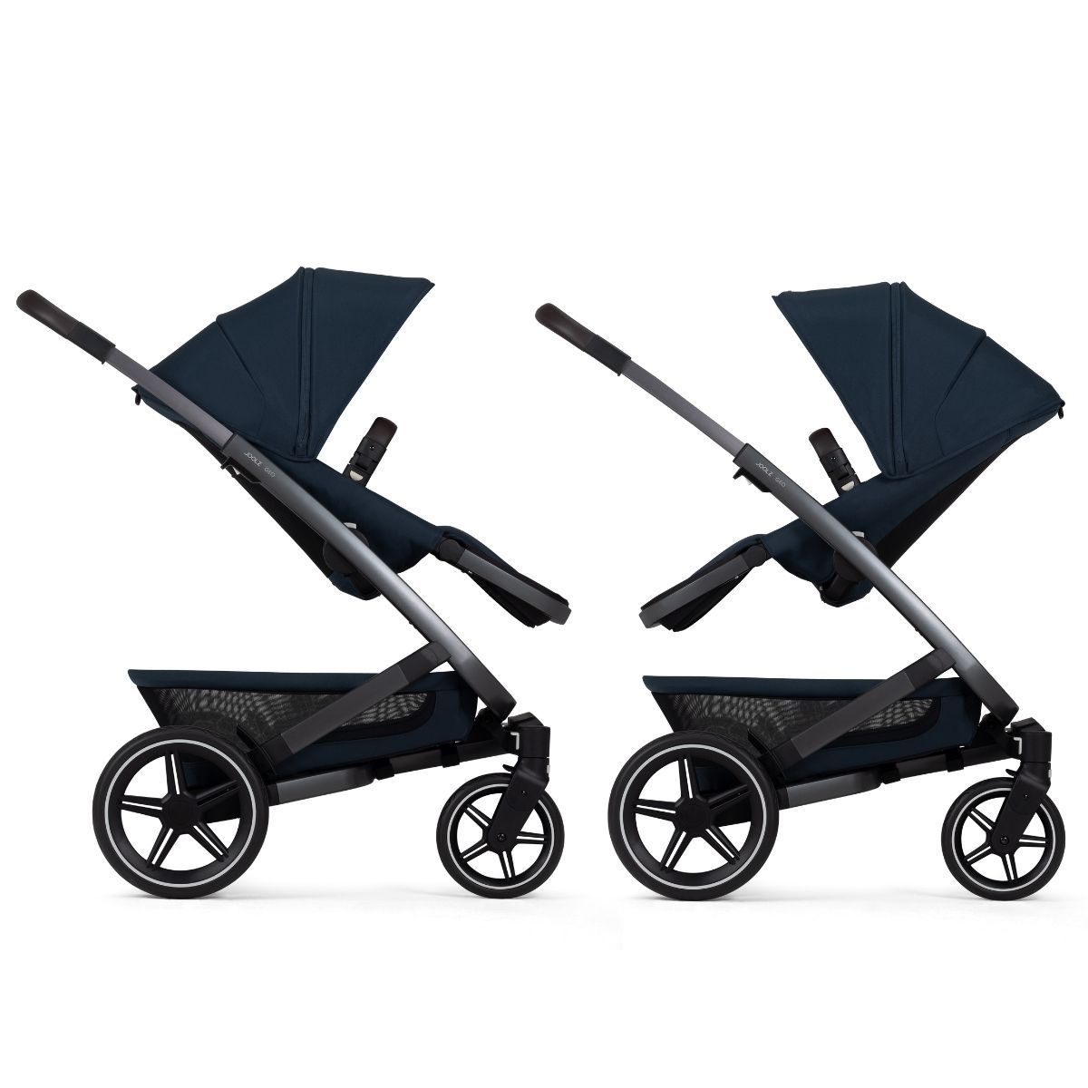 The Joolz Geo 3 pushchair impresses with its simple and functional design! The Geo 3 allows direct contact with your little one thanks to the 360-degree rotating play bar and the generous height, which is ideal for parents with a larger stature. The ergonomic sports seat with adjustable five-point harness and footrest offers your child optimum comfort and safety in any sitting position. The generous UVP 50+ canopy provides reliable protection from the sun and wind, while the carrycot serves as a cosy and safety-tested travel cot. And best of all, Joolz attaches great importance to sustainability by using recycled materials and planting a tree for every pushchair sold. The Geo 3 also scores with a spacious lower basket and all-wheel suspension, making it perfect for both city strolls and excursions. And if your family grows, the pushchair can easily be extended to keep pace with your family.
