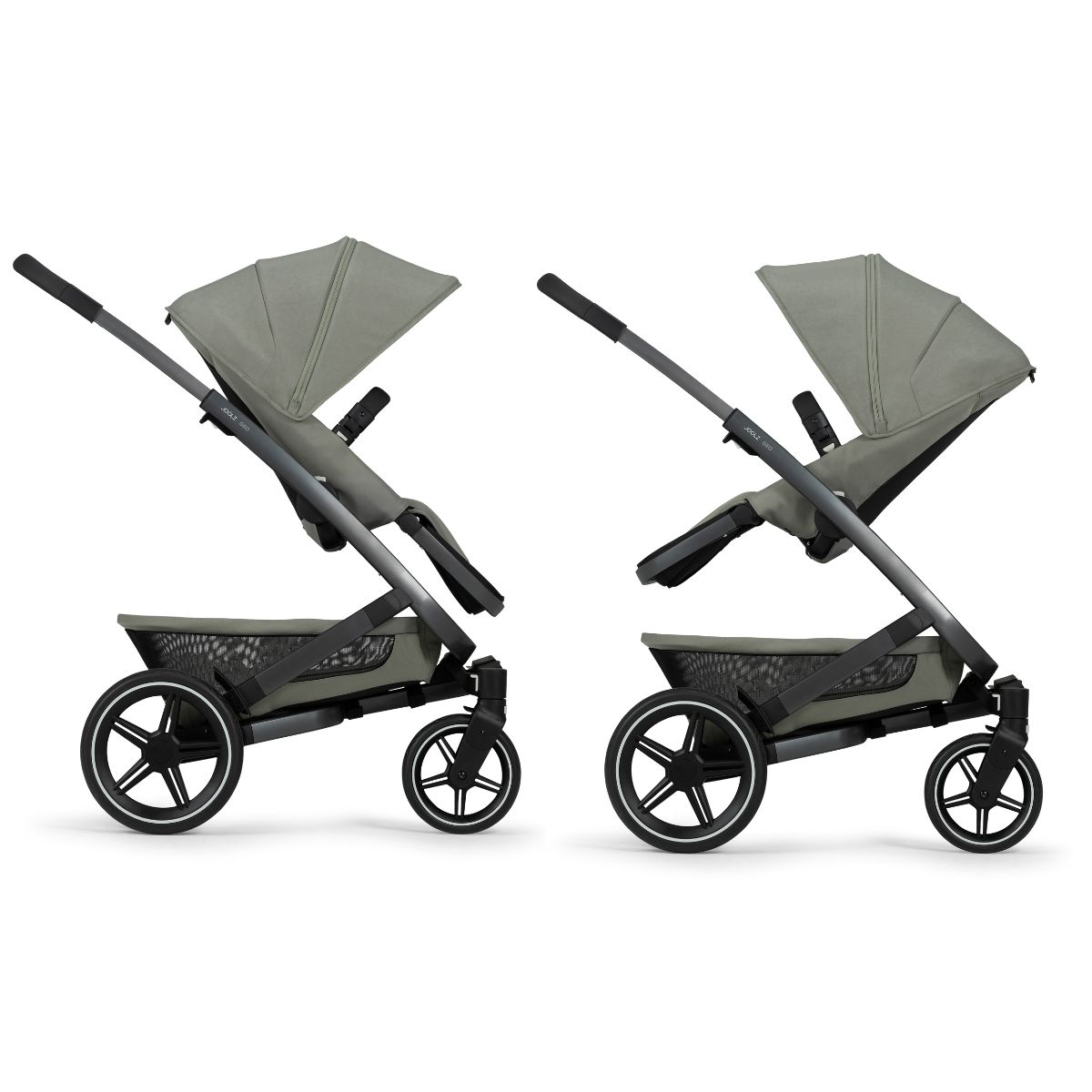 The Joolz Geo 3 pushchair effortlessly combines functionality and elegant design - an ideal choice for families looking for practical solutions without compromising on style. The raised seating position is particularly practical, allowing your child to be at eye level during mealtimes. The 360-degree swivelling play bar and adjustable telescopic push handle ensure comfortable pushing, while the ergonomic sports seat can be adjusted in three positions and offers optimum comfort. Thanks to sustainable materials and the planting of a tree for every model sold, the Geo 3 also makes a contribution to protecting the environment. It also grows with your family: the pushchair can be extended with a second carrycot or seat unit (sold separately) so that it can be used as a duo or twin pushchair if required, without compromising on manoeuvrability and comfort.