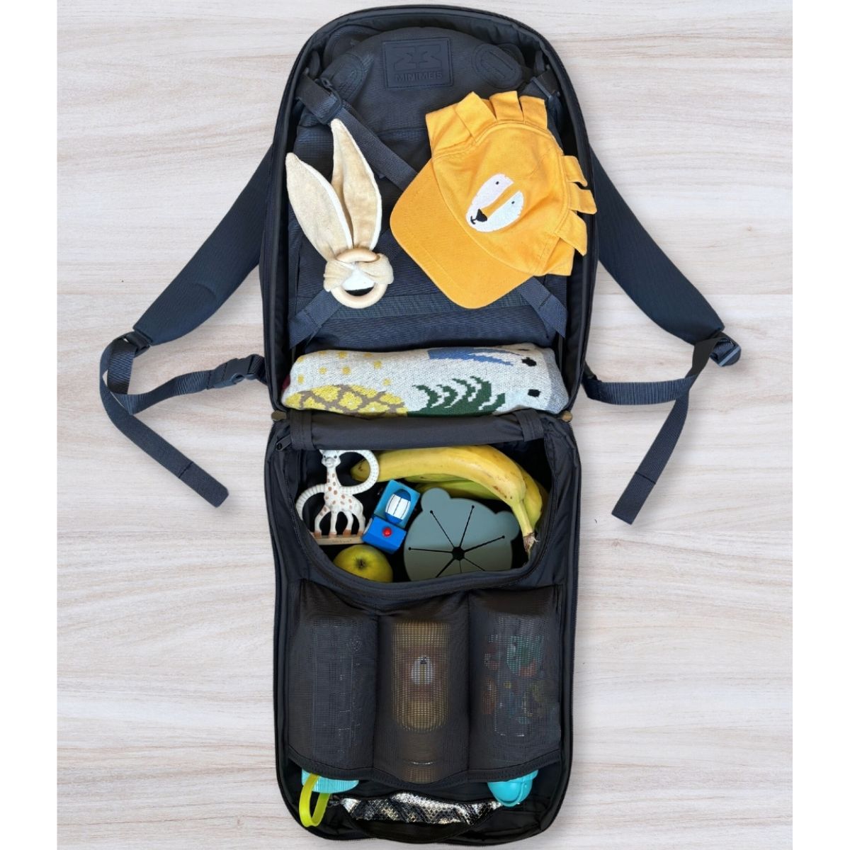 With the HERO backpack, you always have everything with you - and perfectly organised! The numerous compartments offer generous storage space for baby items, laptops and even the MiniMeis carrier. The practical thermal pocket keeps drinks and snacks fresh, while the all-round opening ensures that you can get to everything quickly at any time. But the HERO is much more than just a changing bag: from family outings to everyday office life, it is a reliable companion that grows with your needs!