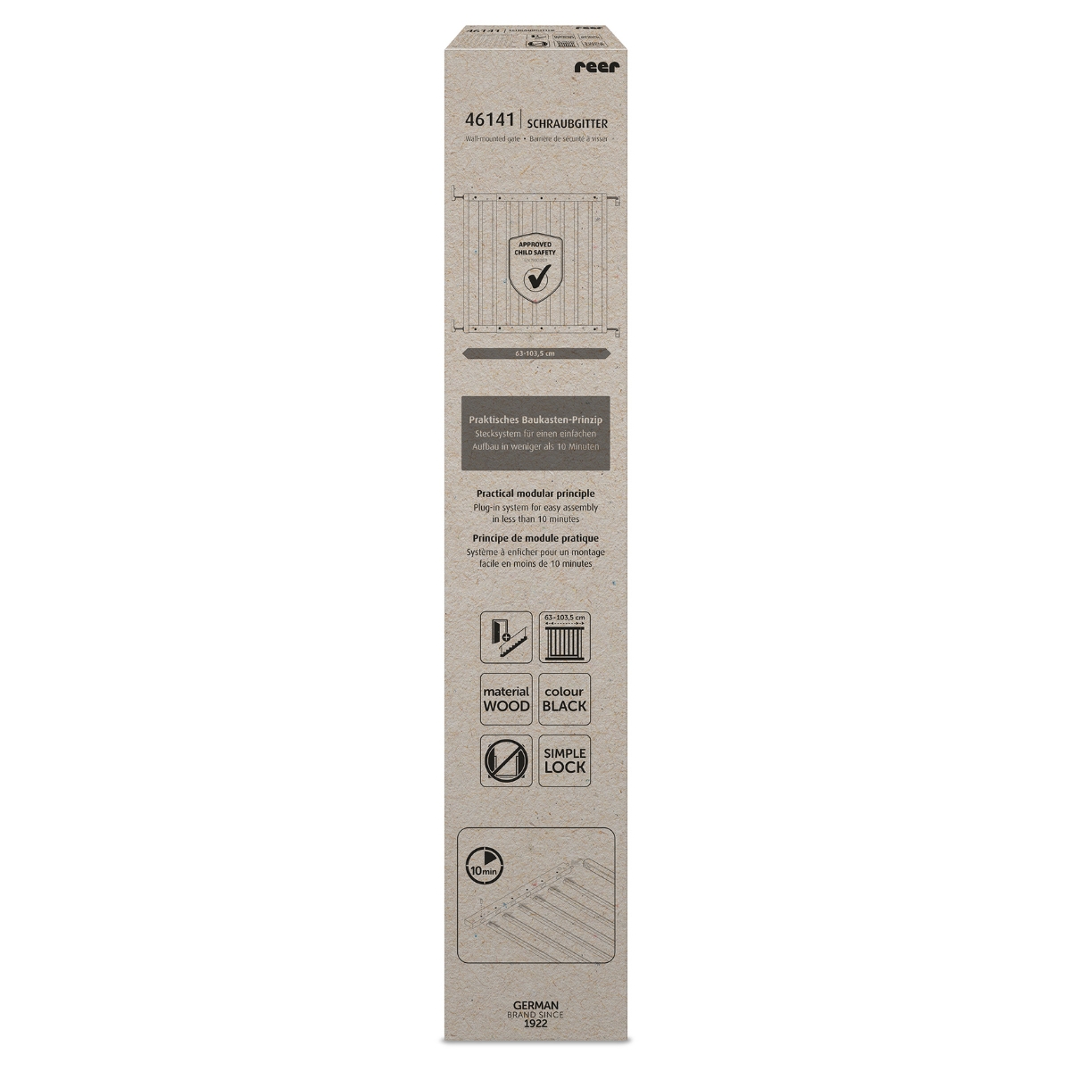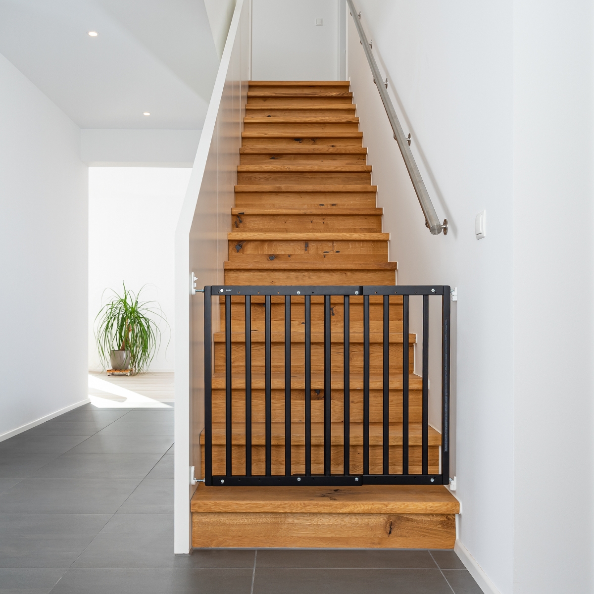 Protect your little ones from dangerous falls down the stairs with the screw gate from Reer, which has been specially developed for the needs of small children. Thanks to its simple design with a practical plug-in system, you can install it quickly and effortlessly. And the best thing about it? The kit approach not only reduces packaging waste by up to 60%, but also helps to protect the environment. The grille not only offers safety, but also convenience and flexibility. It enables barrier-free access while maintaining the full width of the passageway. The childproof locking mechanism ensures that your little explorers are safely protected while they explore the world around them. Thanks to the ability to open it in both directions, you always have full control over the access area. No more worries about potential accidents. Invest in safety and peace of mind for your family with this high-quality screw gate.