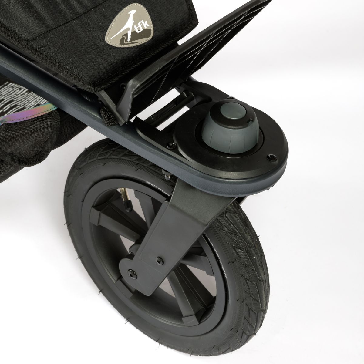 The aluminium frame offers numerous advantages. These include its low weight and long service life, as aluminium is extremely robust. In combination with the pneumatic tyres, suspension and smooth steering, you are ideally equipped to tackle even challenging routes with ease. The optional adjustable directional stability allows precise control of the pushchair.