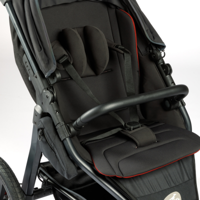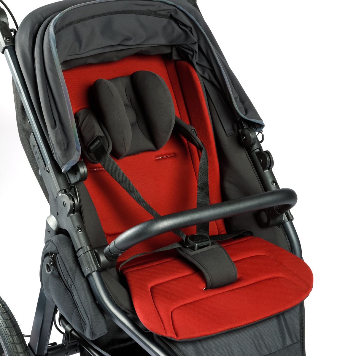 The well-padded seat gently absorbs shocks while walking and provides your child with cosy comfort. The breathable fabrics prevent your child from sweating too much in summer. You can also choose between the anthracite-coloured and the red side of the seat insert. To protect your child from the sun, the canopy can be extended and, thanks to the mesh insert, the canopy can even be ventilated if it gets too warm. The sports seat is particularly large and can be used for a long time.