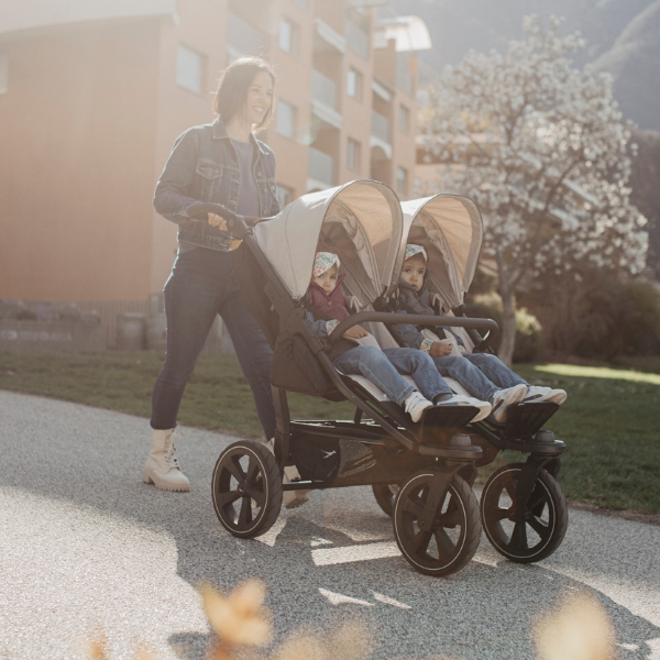 Vor allem an sonnigen Tagen sind wir gerne mit unseren Kindern draußen. Die erweiterbaren Sonnenverdecke der Sitzeinheiten sorgen für ein schattiges Plätzchen. Darüber hinaus bieten die Stoffe UV-Schutz 50+!