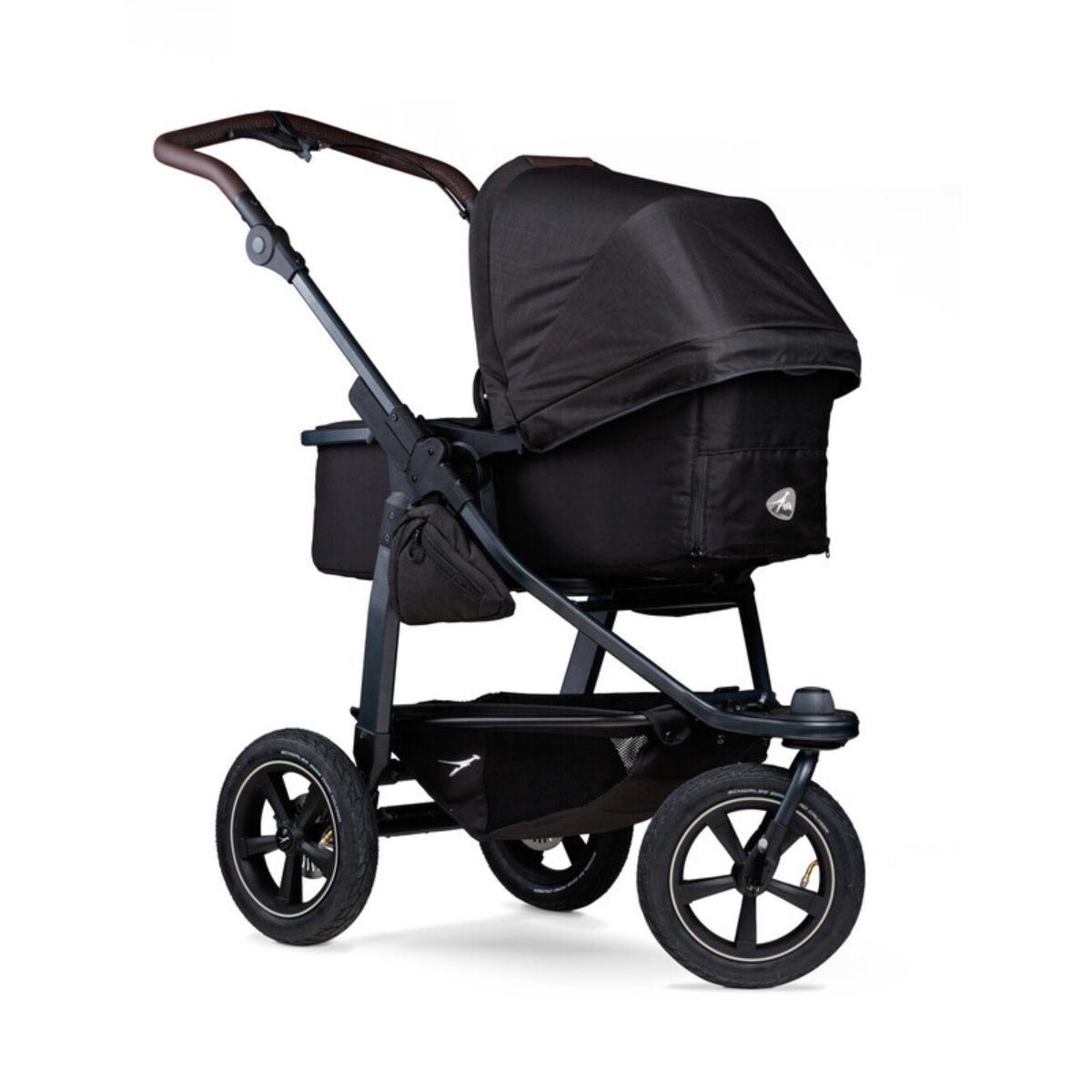 Der TFK Mono 2 ist der Nachfolger des TFK Mono. Er besitzt also die Grundeigenschaften des TFK Mono und wurde zusätzlich verbessert und verfeinert. So ist die Liegewanne des Mono 2 um 5 cm größer, als die Liegewanne des Mono. Der Mono 2 ist auch leichter zu bedienen. So besitzt er nur noch einen Knopf am Verdeck, damit Sie häufiger nur noch eine Hand zum Bedienen des Kinderwagens brauchen. Zusätzlich wurde das Design überarbeitet. Der Rahmen ist sportlicher geworden mit weißen Designlinien auf den Reifen und die Griffe besitzen jetzt braunes Kunstleder. Auf Druckknöpfe wurde jetzt größtenteils verzichtet. Auch für den Komfort Ihres Kindes wurde etwas getan: Die Kombieinheit lässt zusätzlich zur Liege- und Sitzposition jetzt auch eine Zwischenposition zu, damit Ihr Kind gemütlich ruhen kann.
