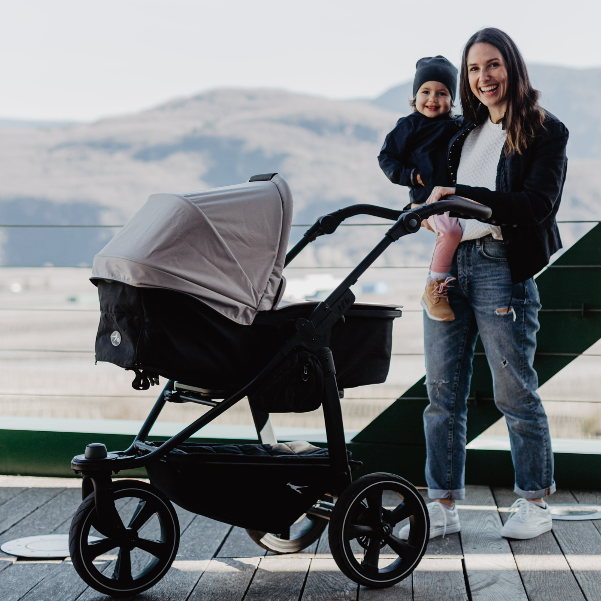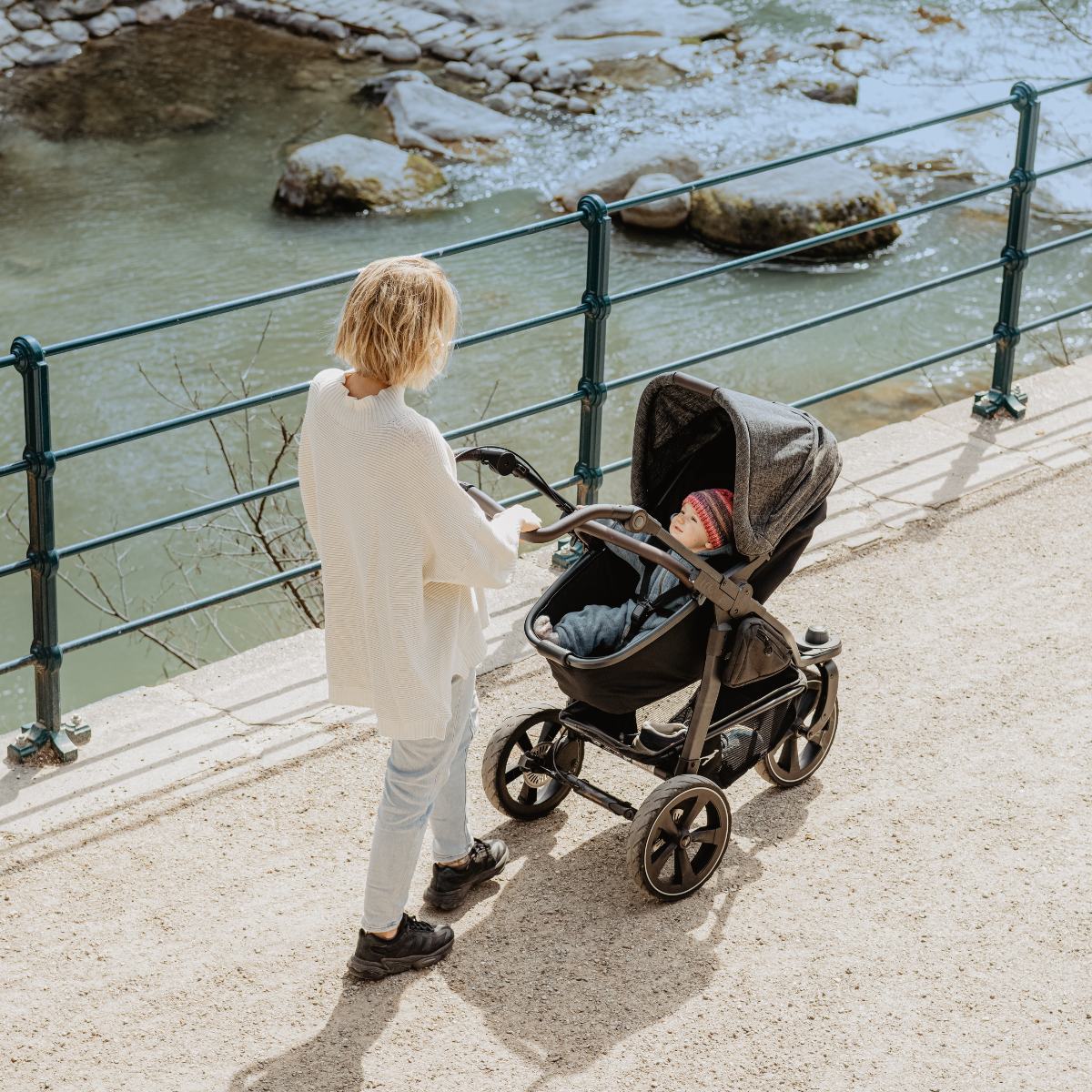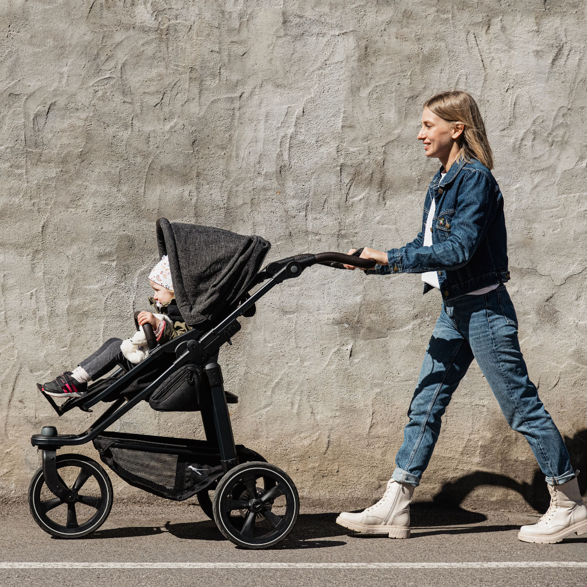Joggen, wandern, shoppen - alles ist möglich mit dem Mono 2. Dank der Handbremse können Sie mit Ihrem Mono 2 laufen gehen. Die All-Terrain-Bereifung ermöglicht Ihnen auch Spaziergänge durch Städte und die Natur.